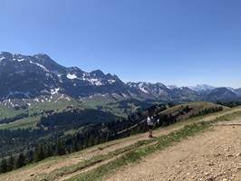Das Ziel schon lange im Blick geht es weiter auf die Scheidegg, wo man sich stärken kann.