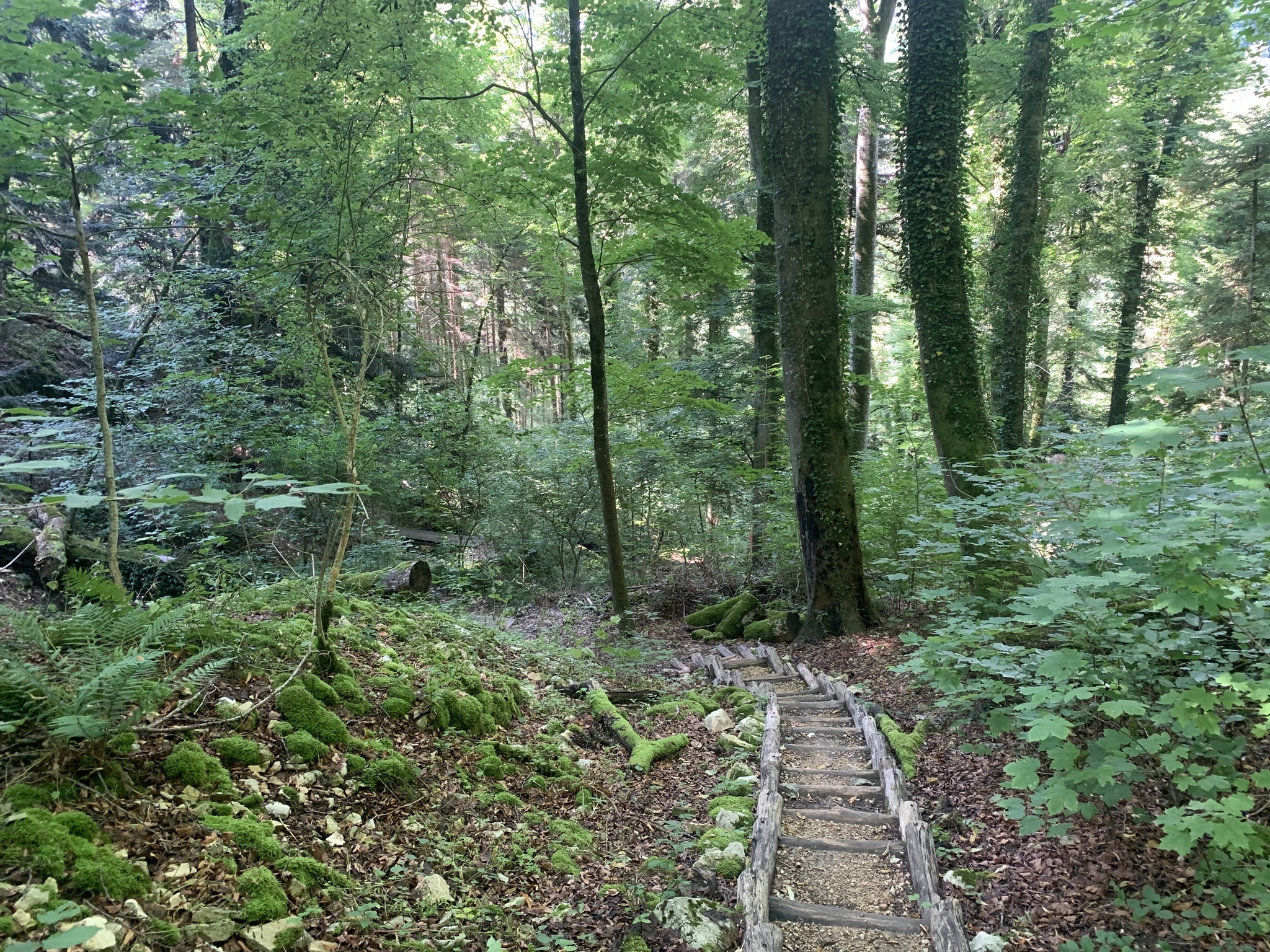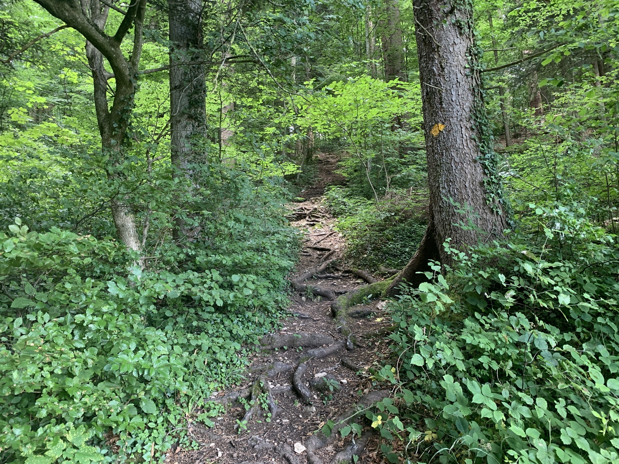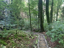 Von hier geht es hinunter zum Wasserfall. In sehr schöner Platz. Jetzt geht es zuerst kurz steil hinauf, danach folgen leider wieder geteerte und Schotterstrassen, was für meine Archillessehne nicht gut war. Ein kurzes Stück geht dann noch über einen Waldweg, aber danach folgen leider wieder Schotter- und Teerstrassen. Am Schluss geht es steil hinunter nach Bubendorf.
