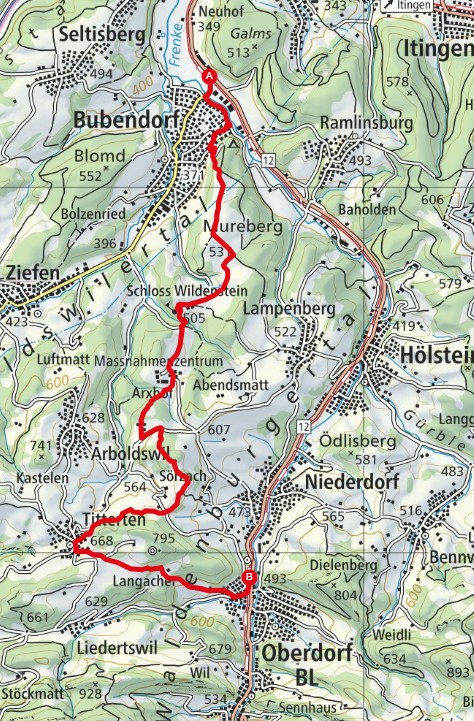 - Route: Bubendorf - Schloss Wildenstein - Arxhof - Titterten - Oberdorf