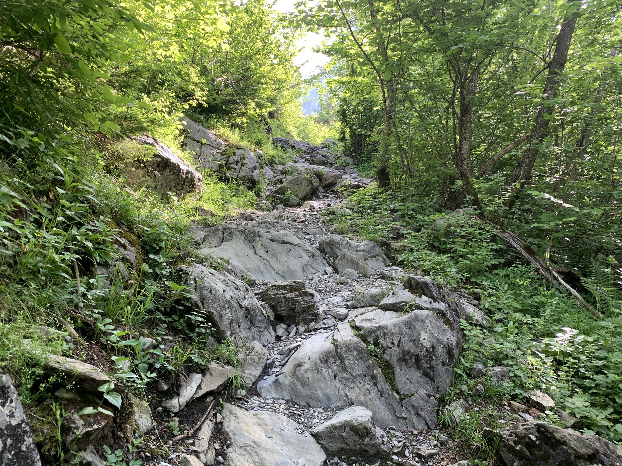 Nach dem Alpenrösli geht es aus dem Wald und es wird auch steiler, aber doch recht gemütlich.
