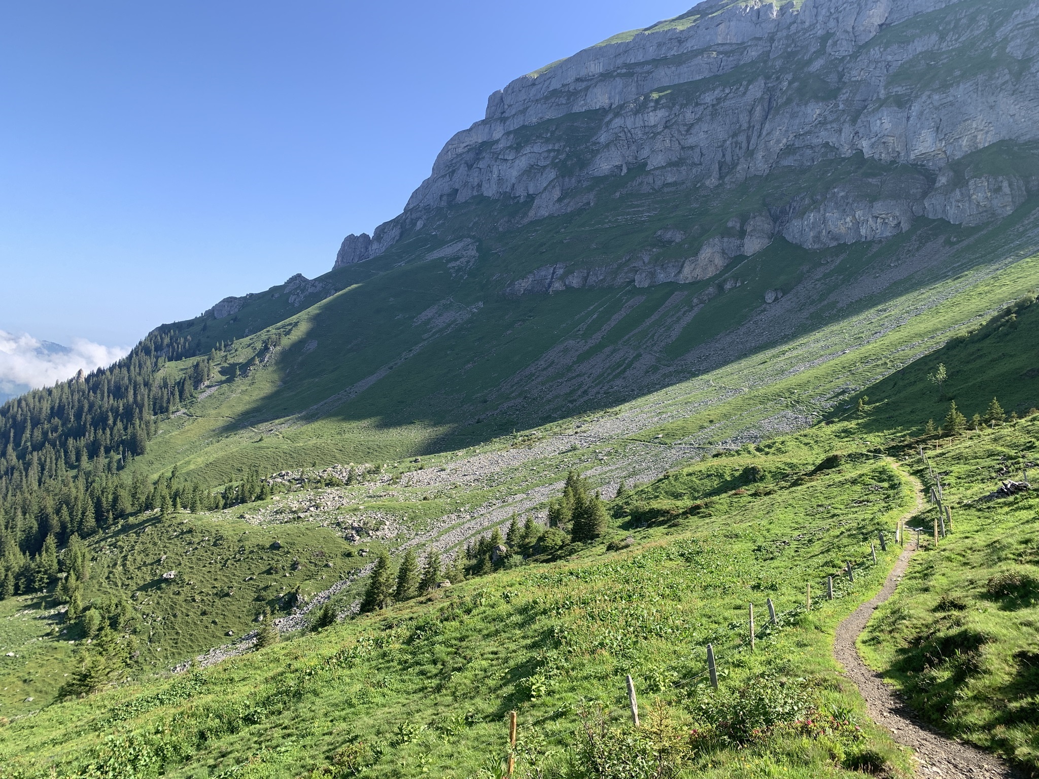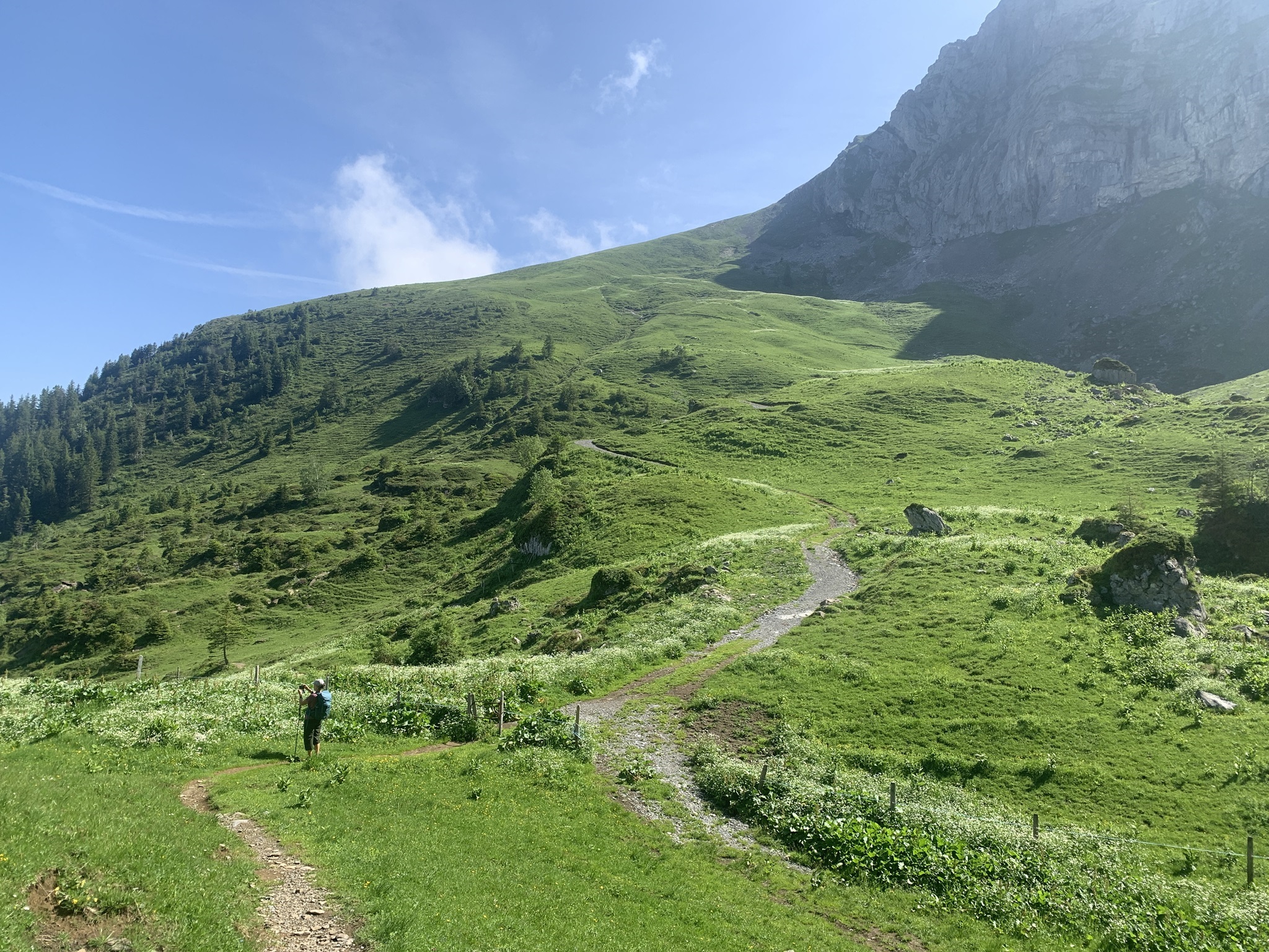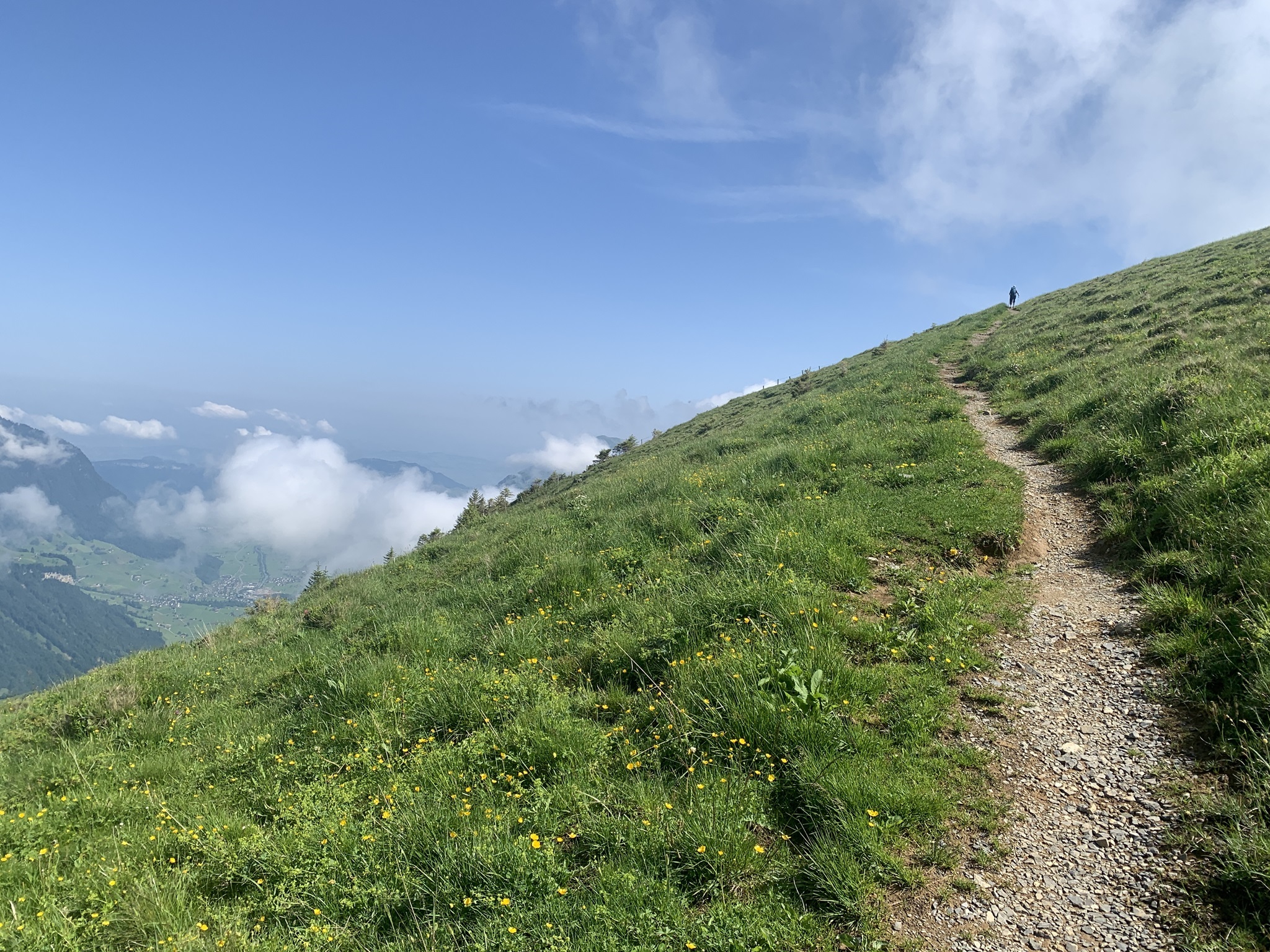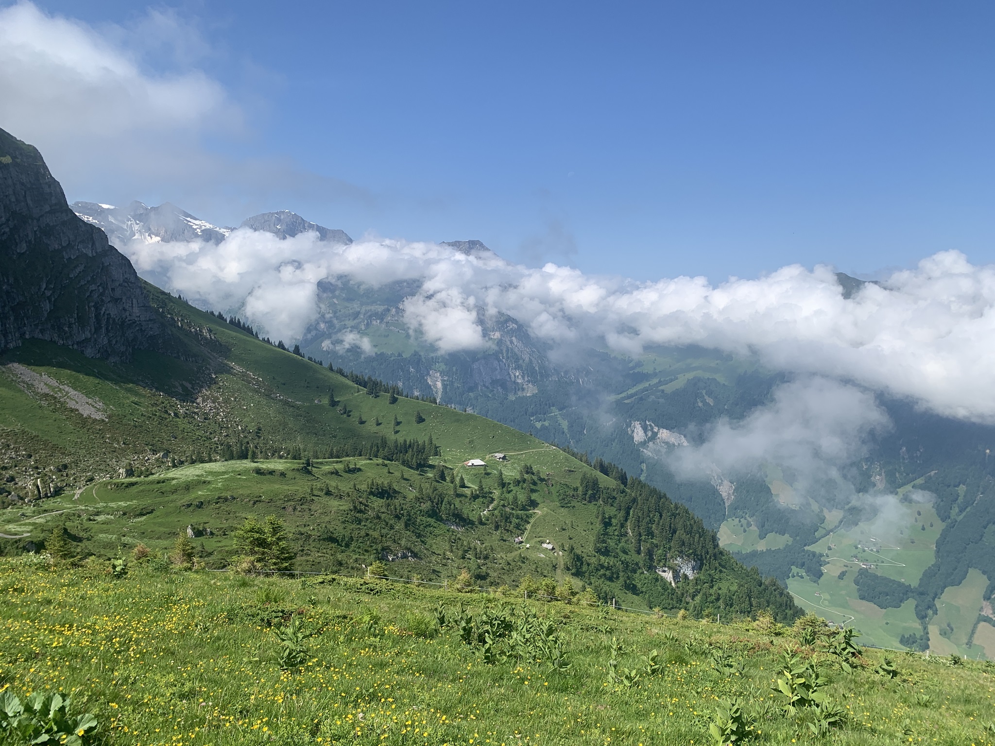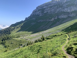 Es ging dann hoch bis zum Brunni um danach wieder abzusteigen bis zu den steinigen Stalden / Walenalp. Es geht über Wiesen und Wälder und die Sicht ist sehr schön!