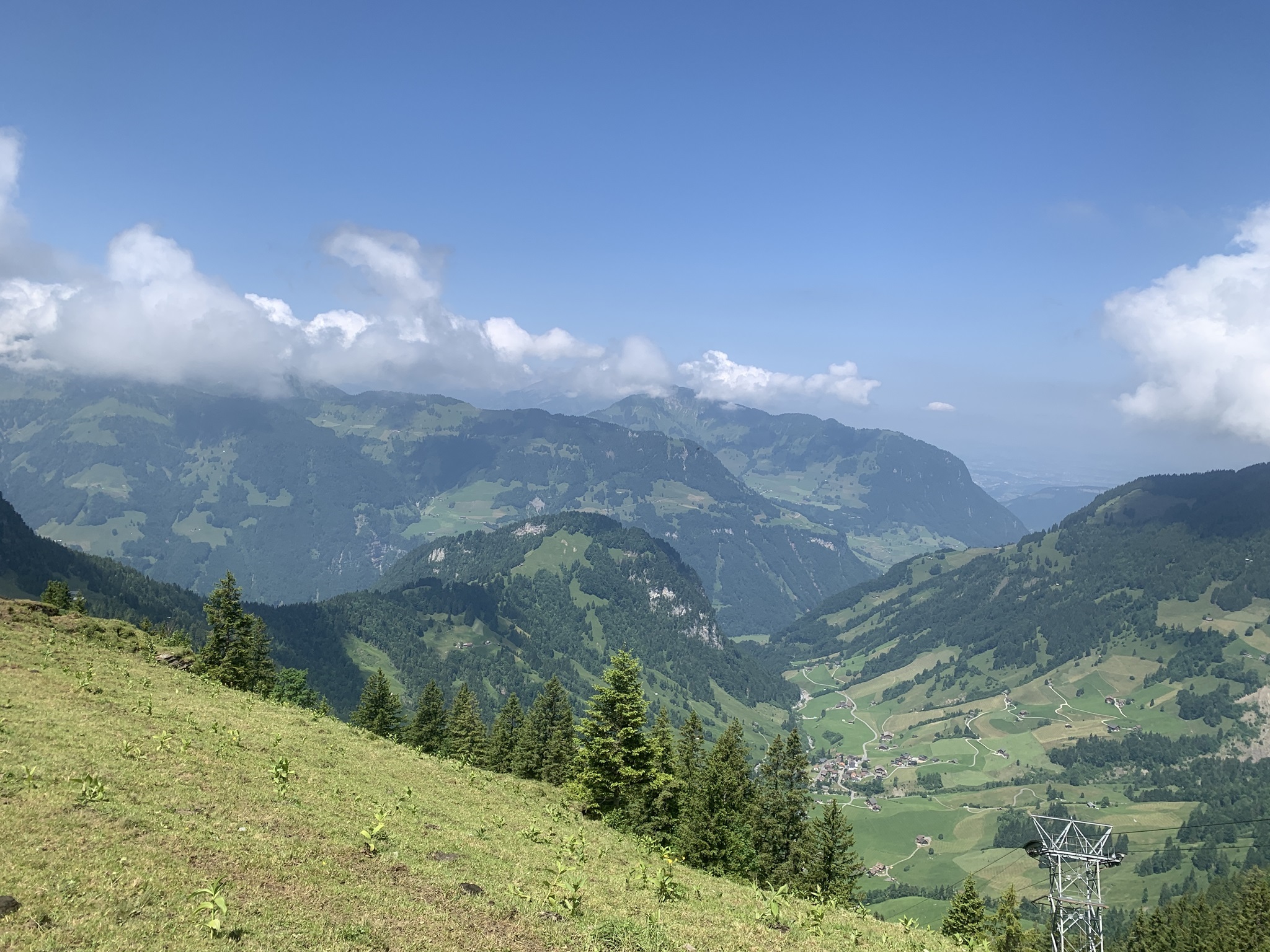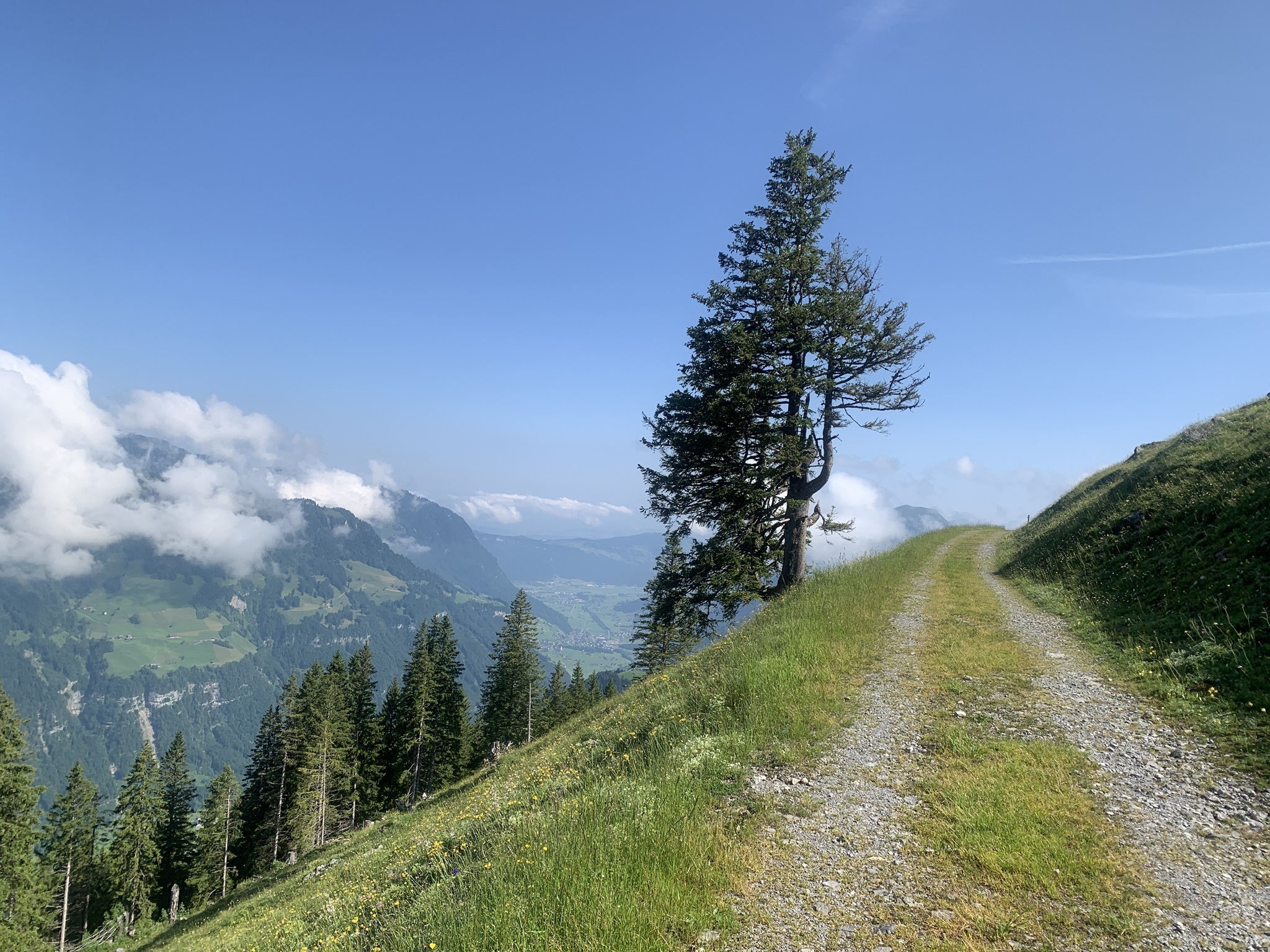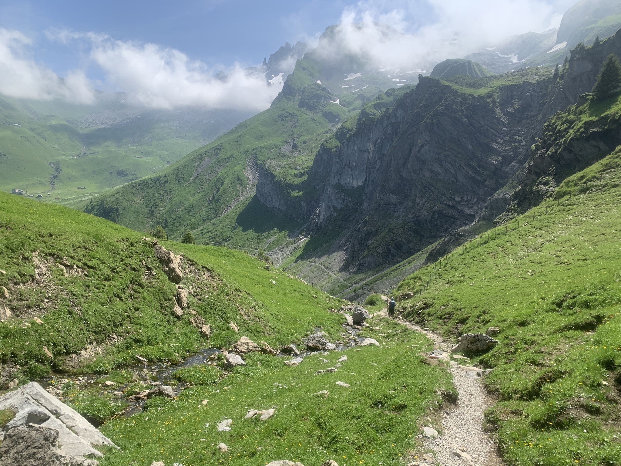 Es ging dann hoch bis zum Brunni um danach wieder abzusteigen bis zu den steinigen Stalden / Walenalp. Es geht über Wiesen und Wälder und die Sicht ist sehr schön!