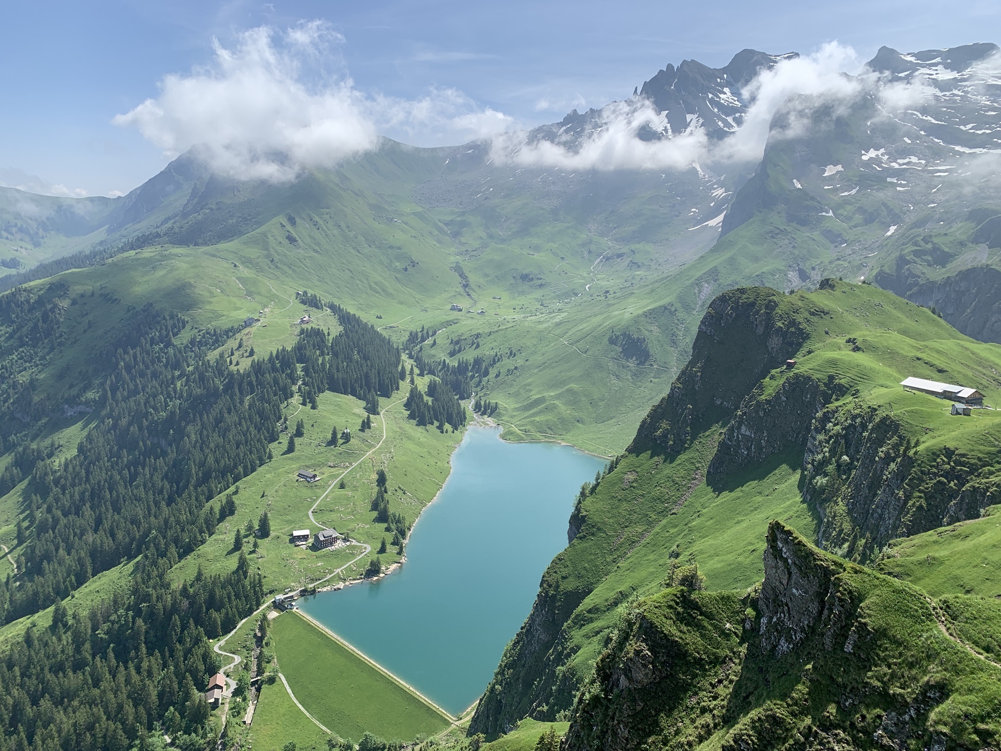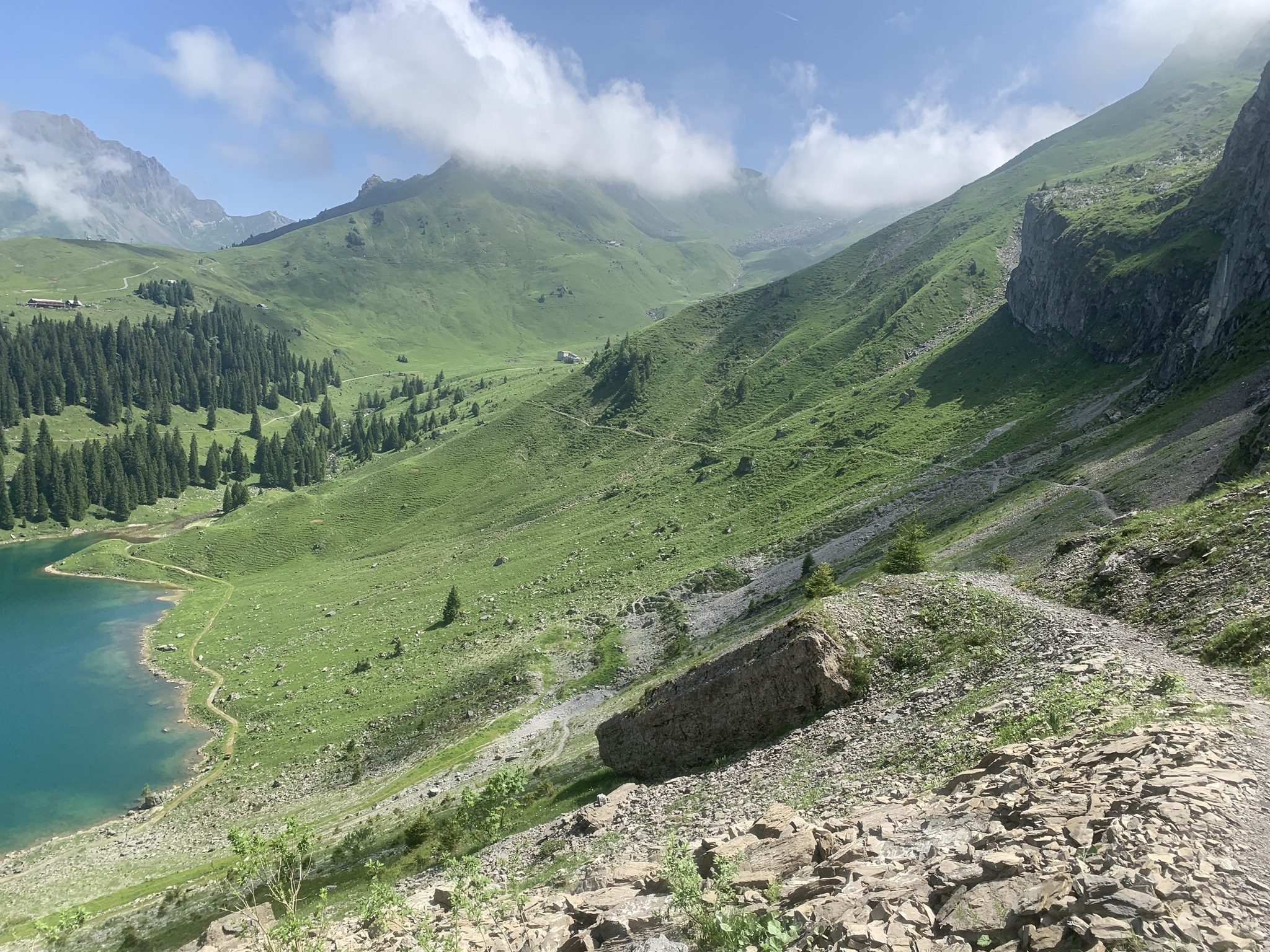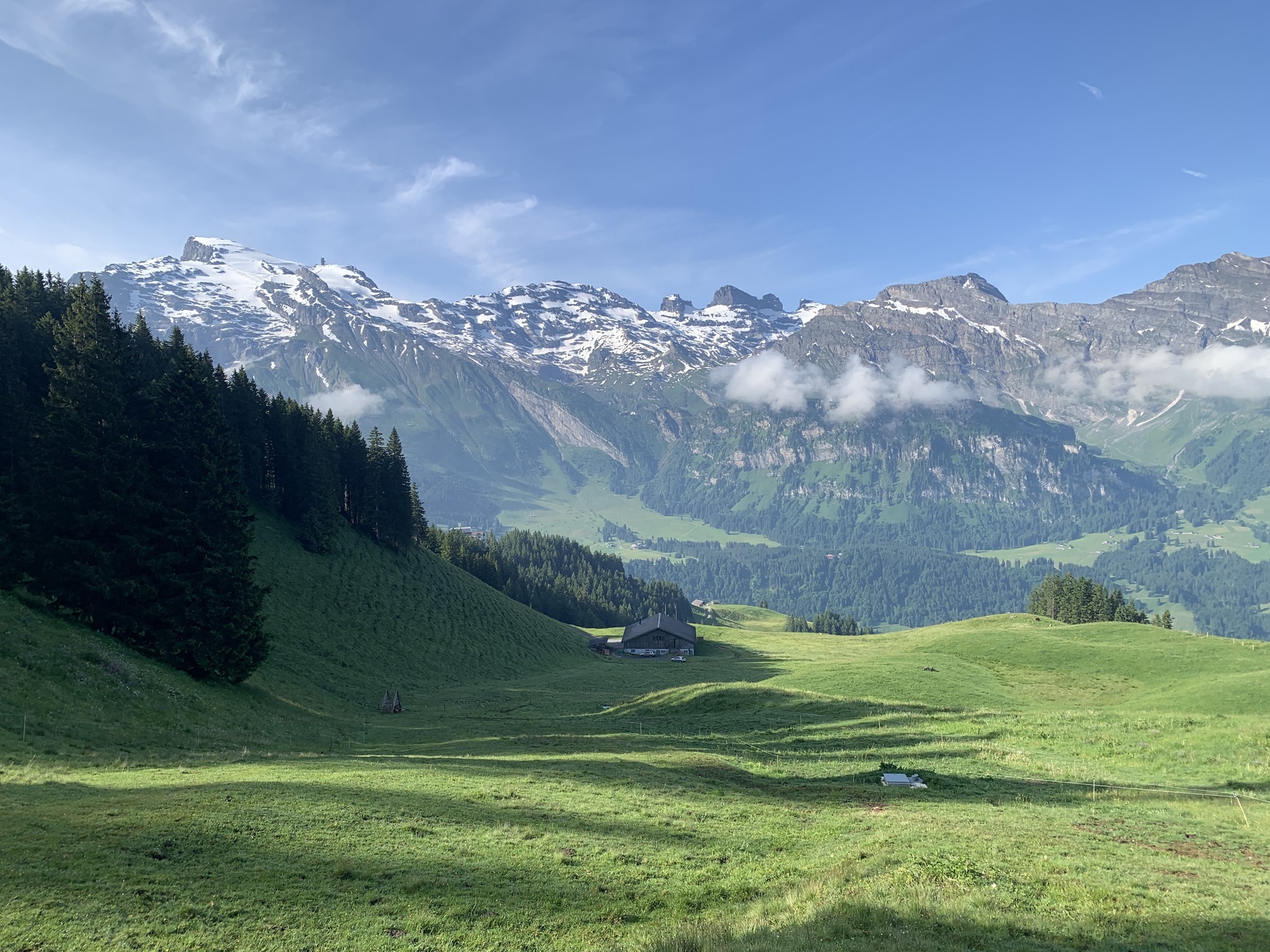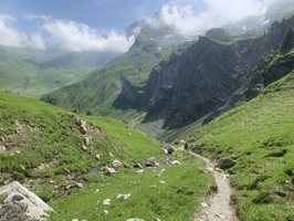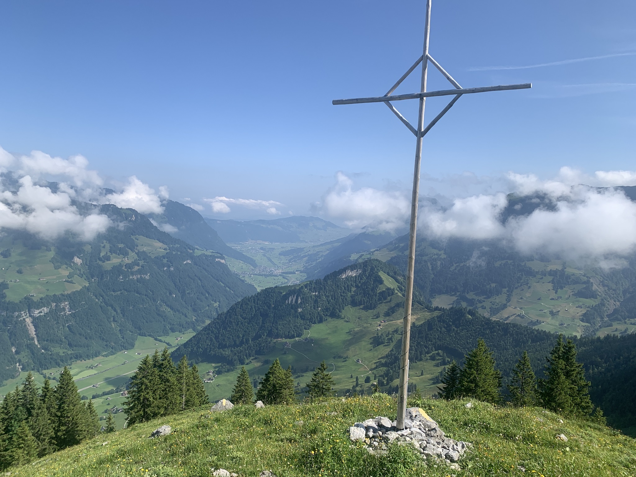 Es ging dann hoch bis zum Brunni um danach wieder abzusteigen bis zu den steinigen Stalden / Walenalp. Es geht über Wiesen und Wälder und die Sicht ist sehr schön!