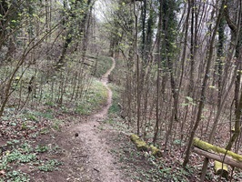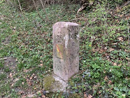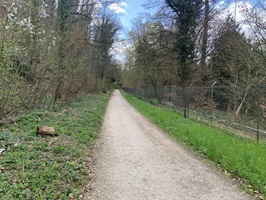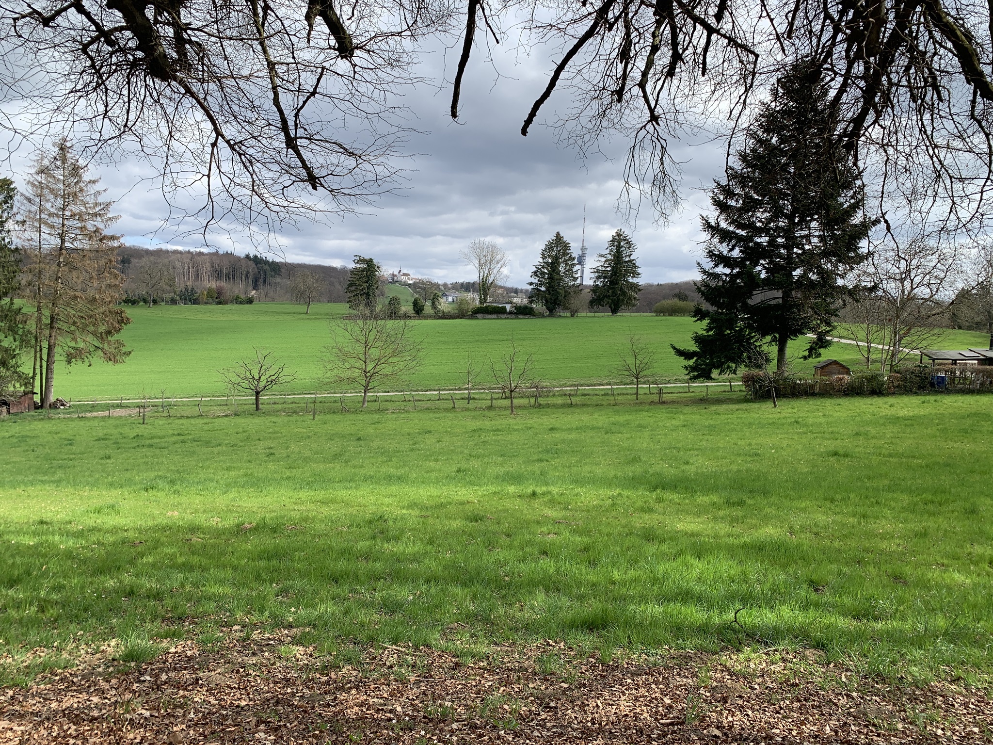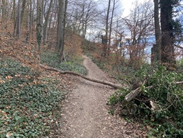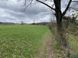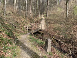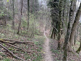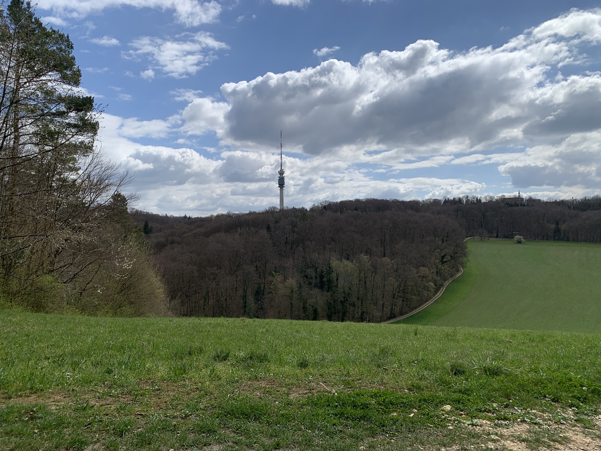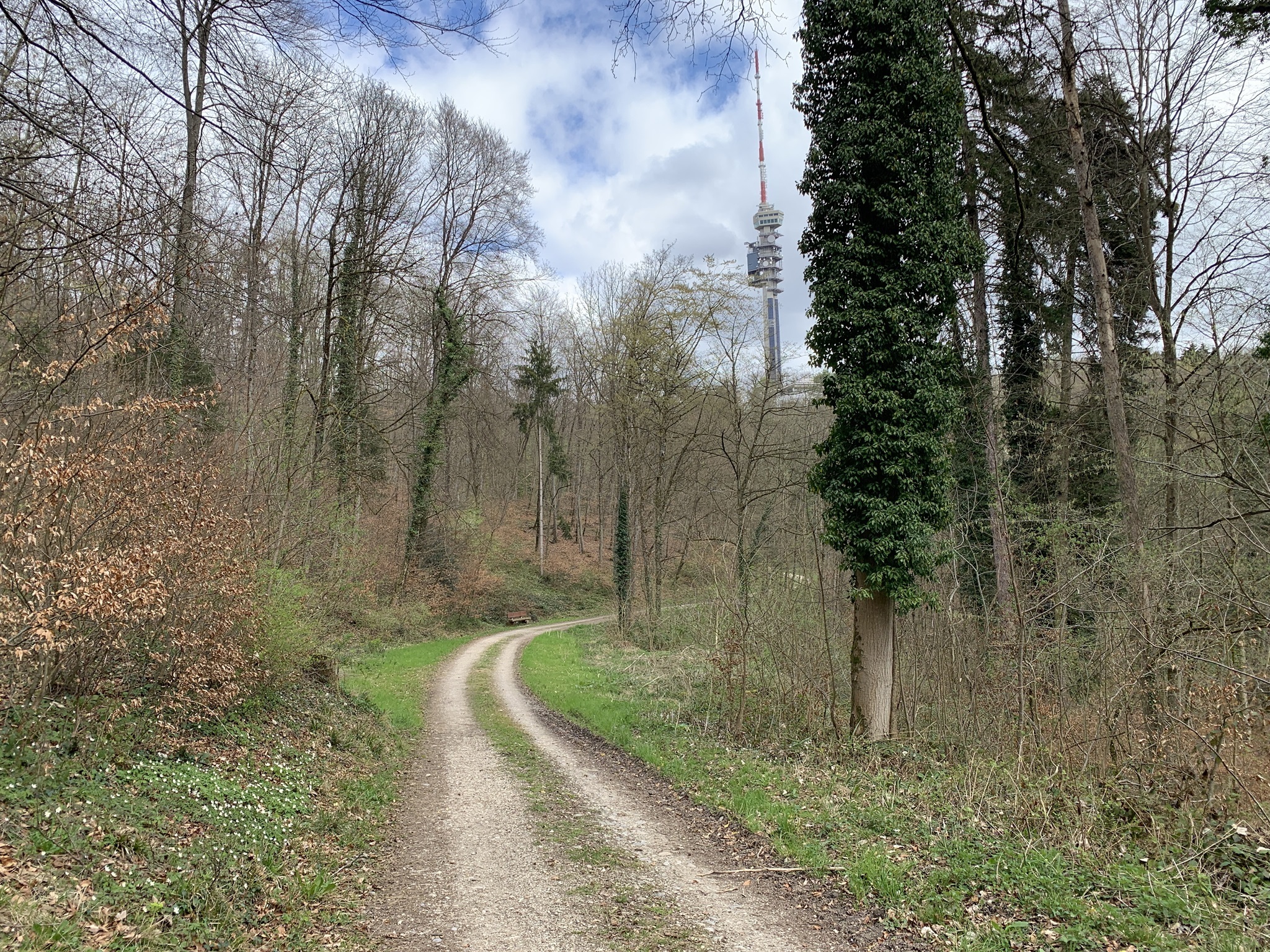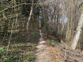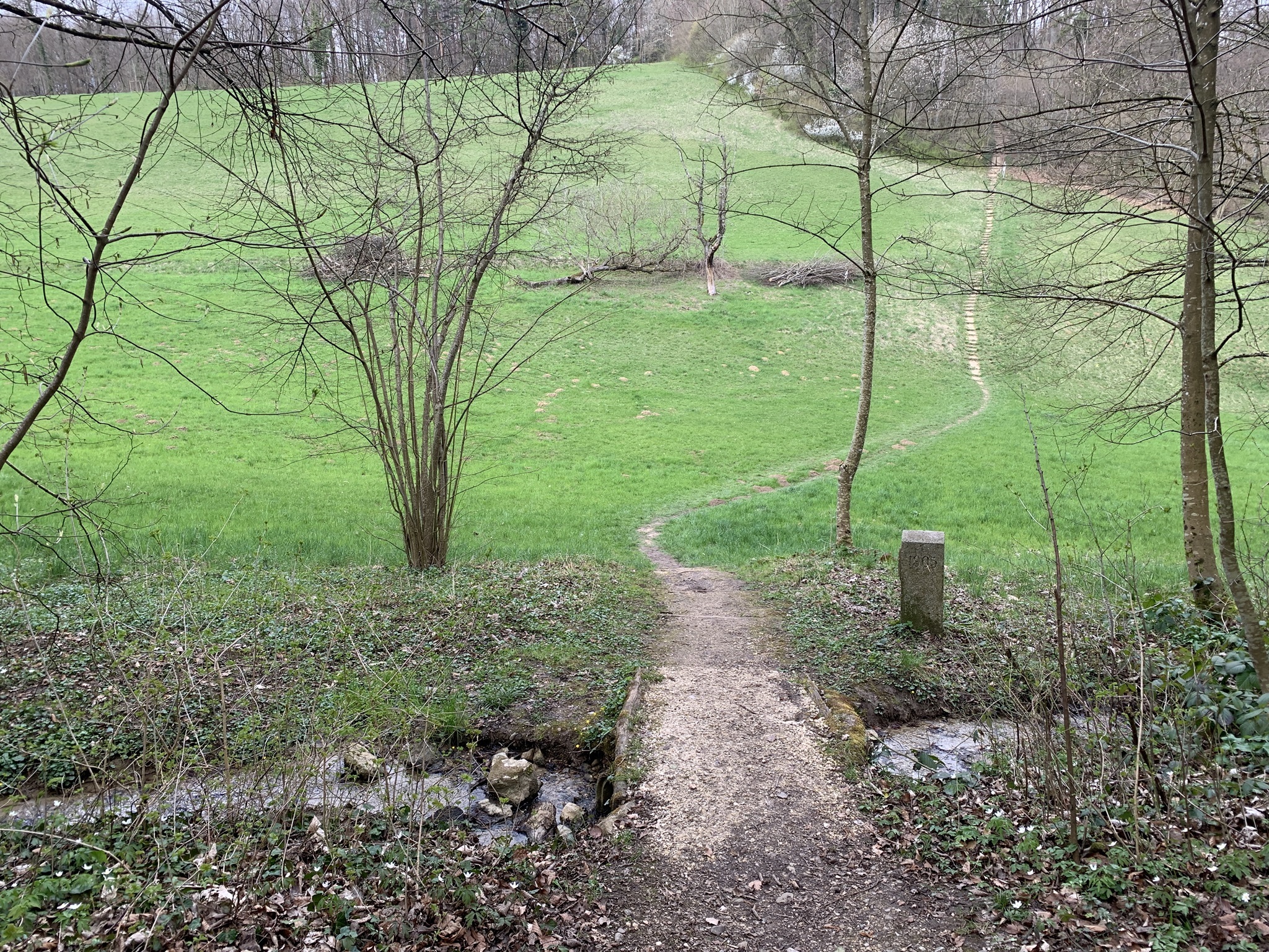 Beim Grenzstein 100 wanderte ich weiter Richtung Rührberg, aber kurz vor Ende des Waldes zweigte ich links am um via Nasser Grund zu meinem Lieblingsbänkli am Brizingerweg zu kommen. Zu meiner Überraschung war hier eine neue Bank! Danke liebe Gemeinde. Von hier ging es auf dem Grenzweg hinunter Richtung Riehen.