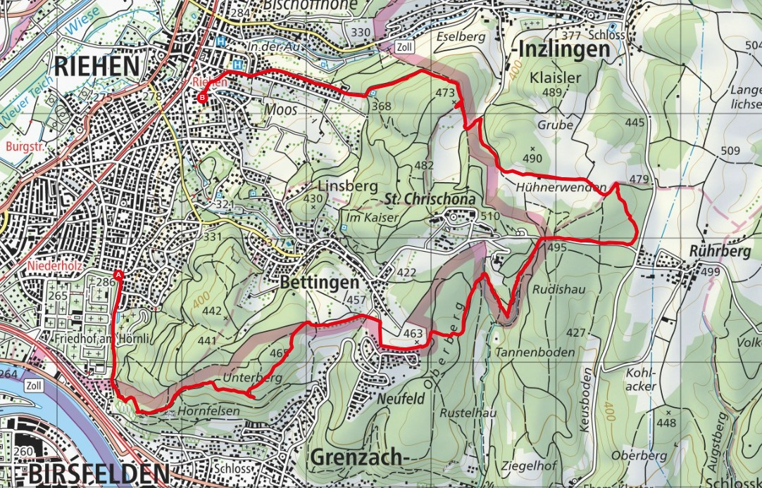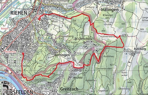 - Route: Riehen - Hornfelsen - Chrischona - Riehen