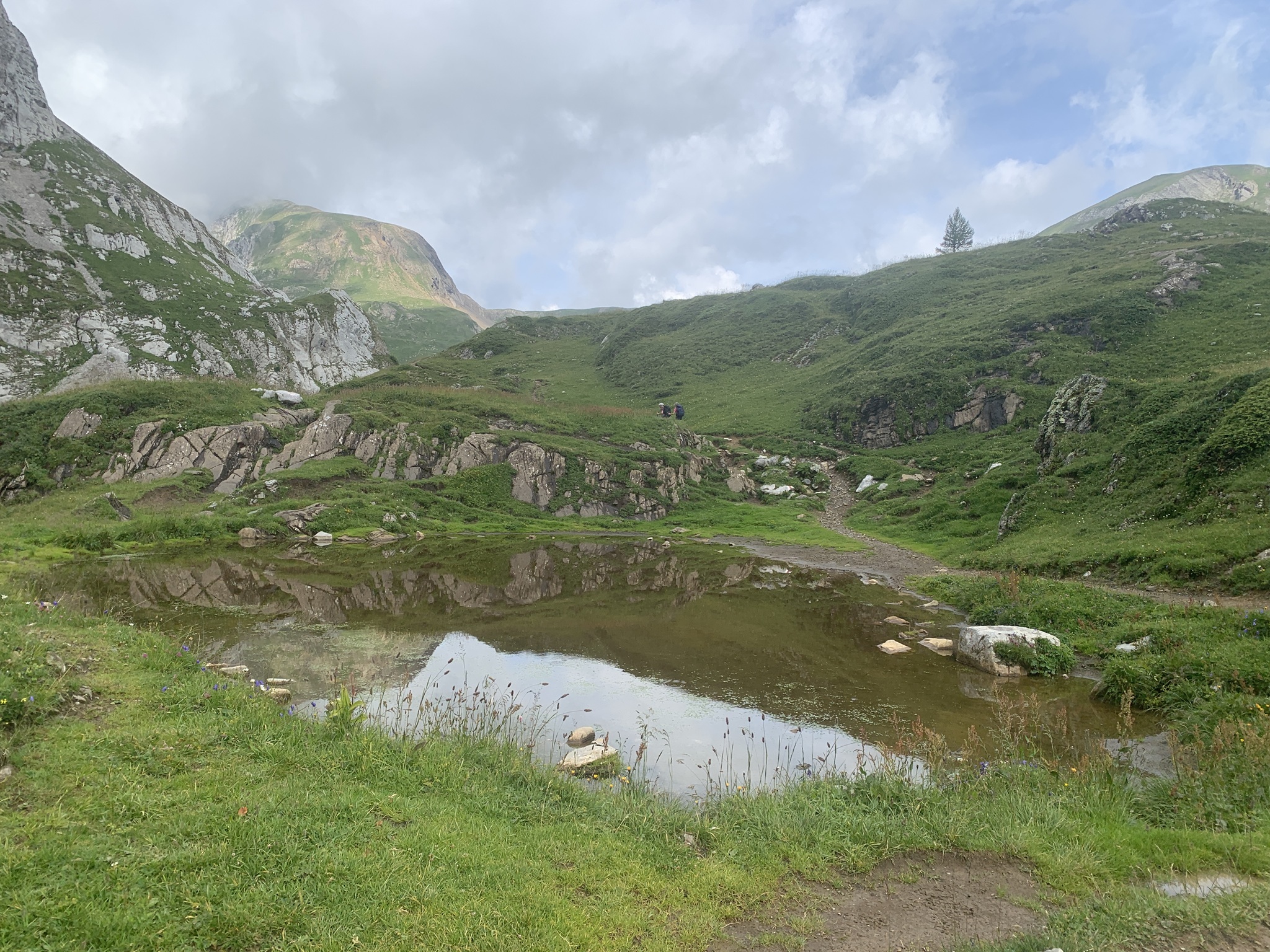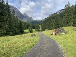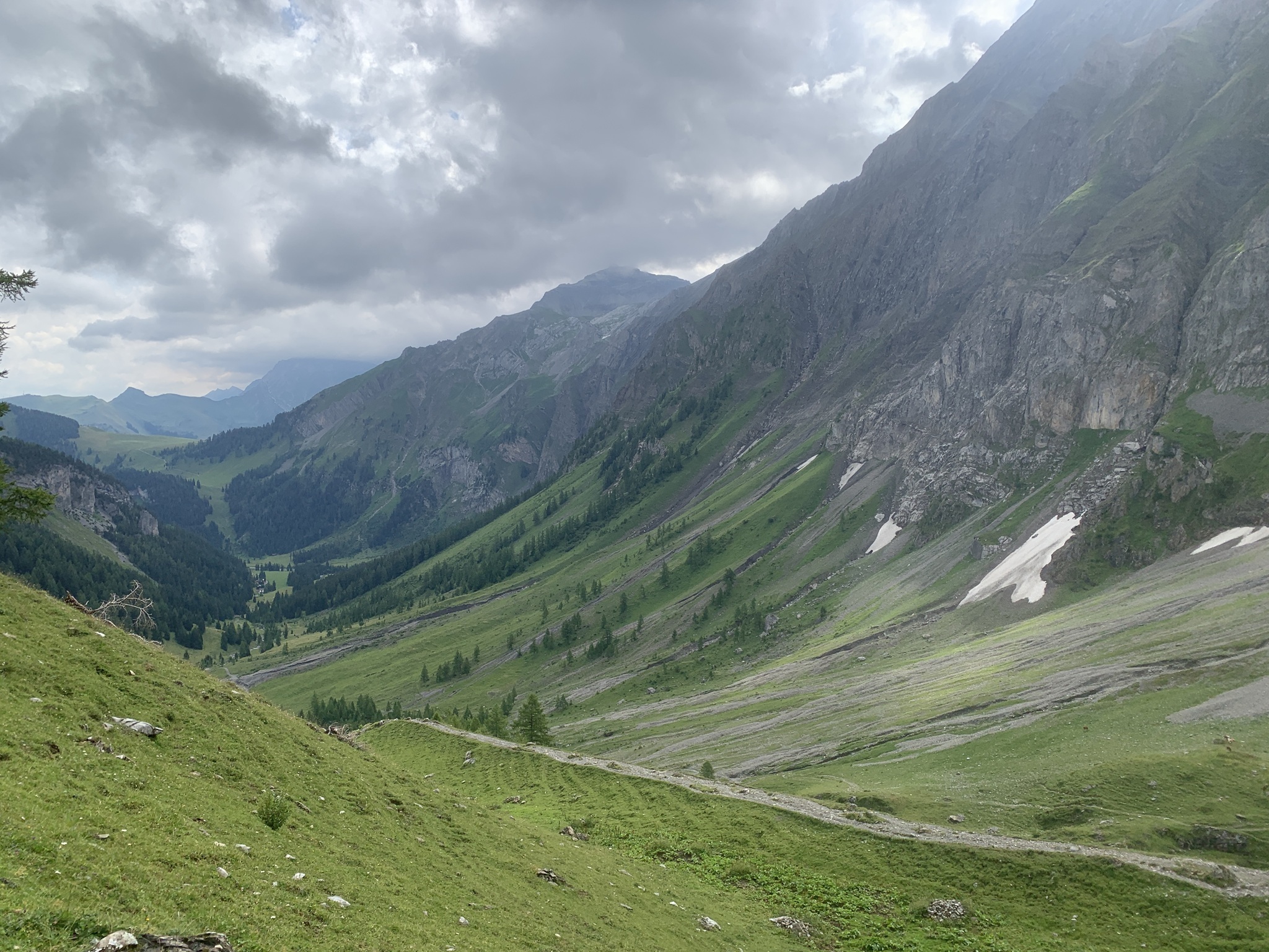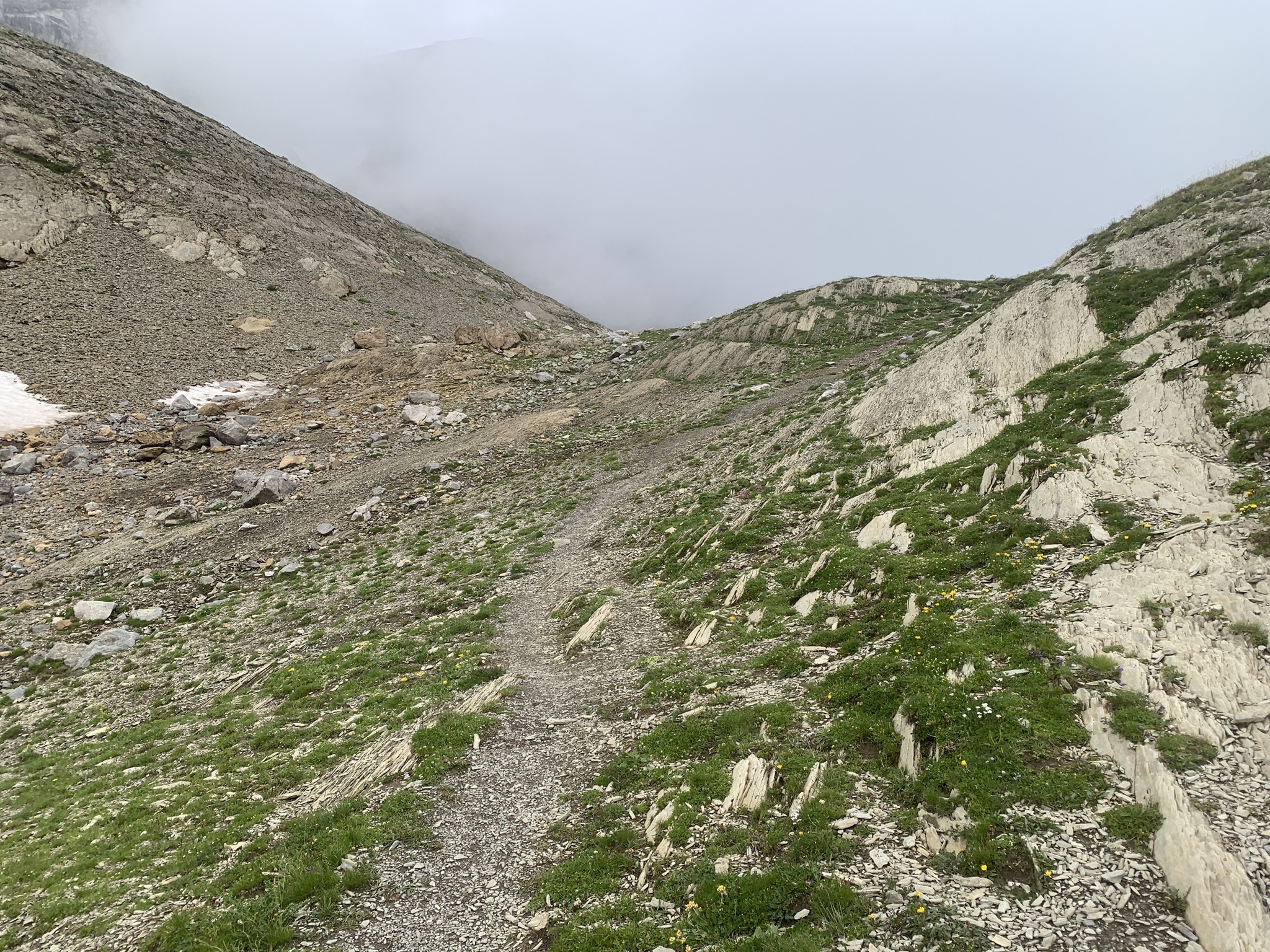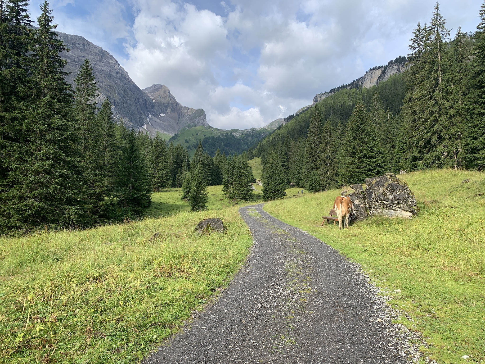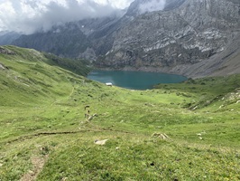 So startet bei trockenem Wetter meine Wanderung. Zuerst geht es sanft ansteigend auf einem Alpsträsschen das Tal hinauf. Beim Groppi folgt dann ein Bergwanderweg der zum Teil doch recht steil ansteigt. Bim Iffigensee angekommen geht es kurz flach dahin, aber danach steigt es noch einmal recht steil an.