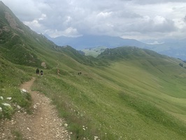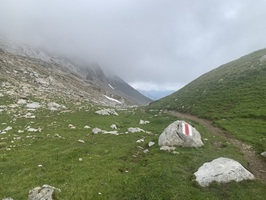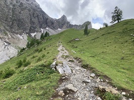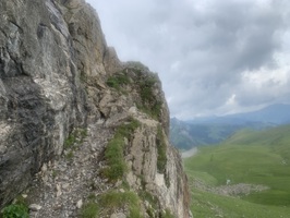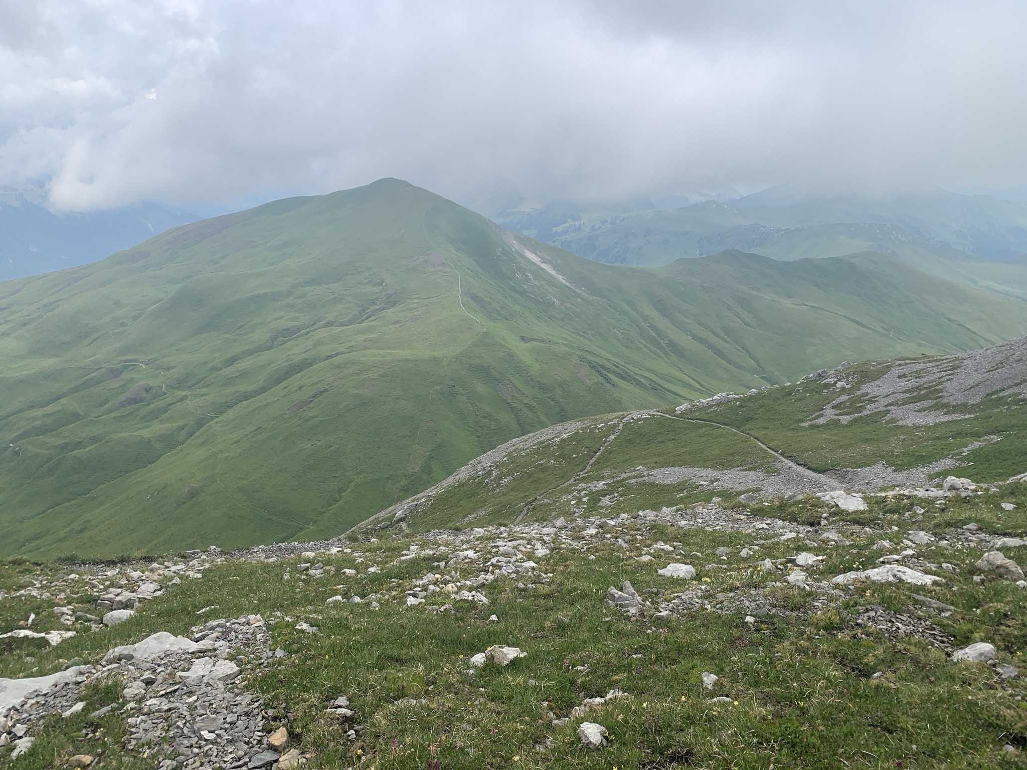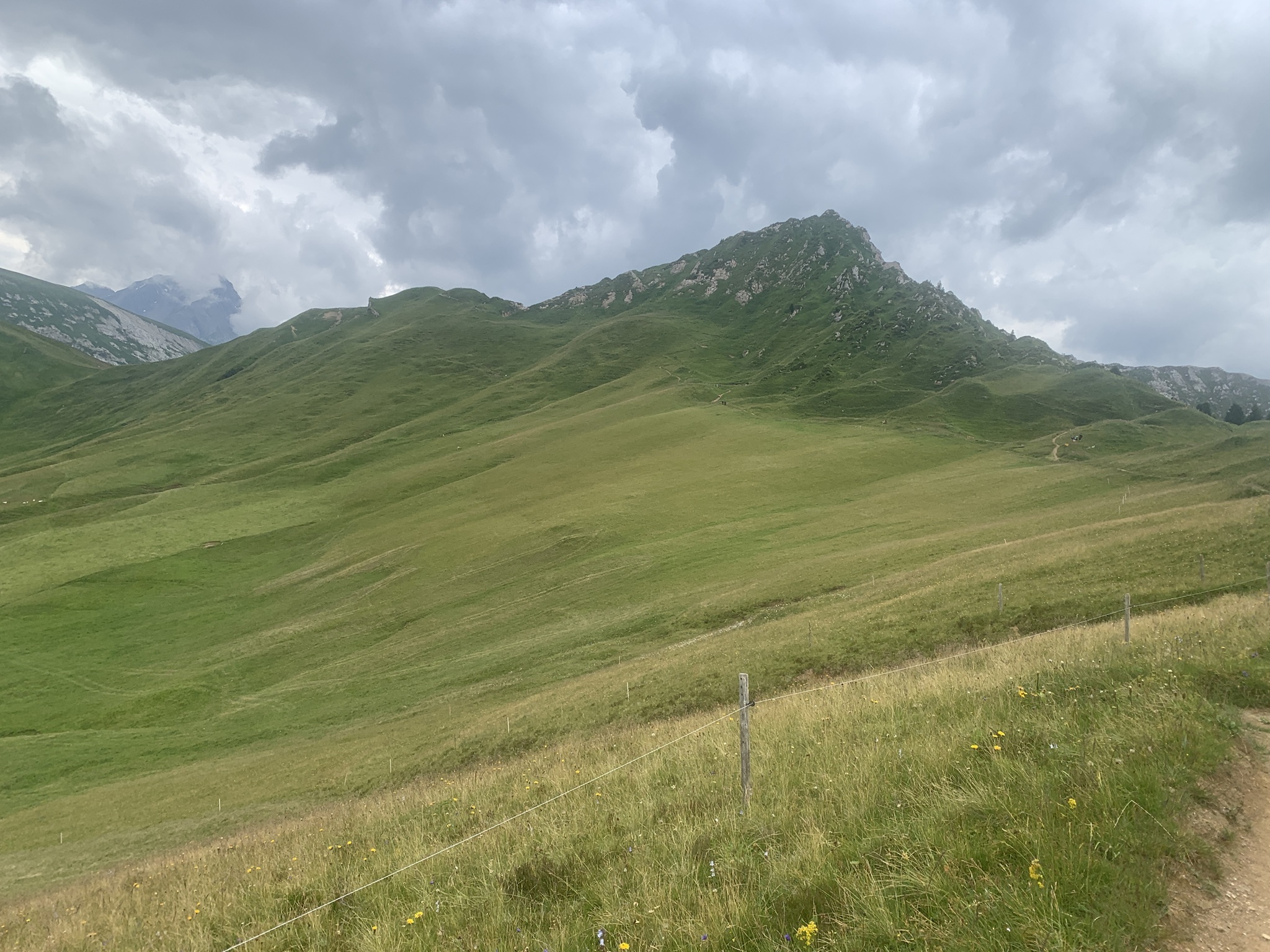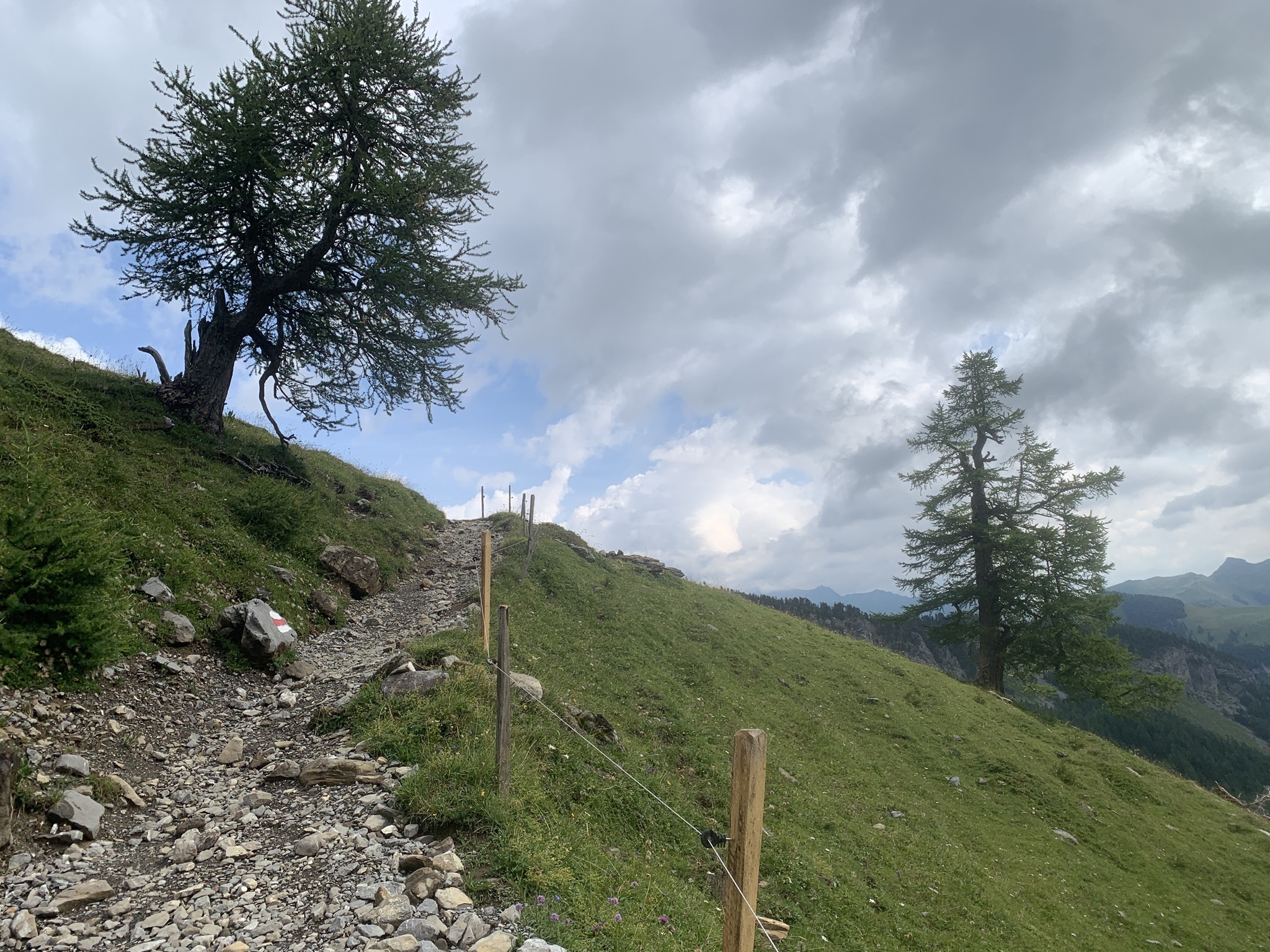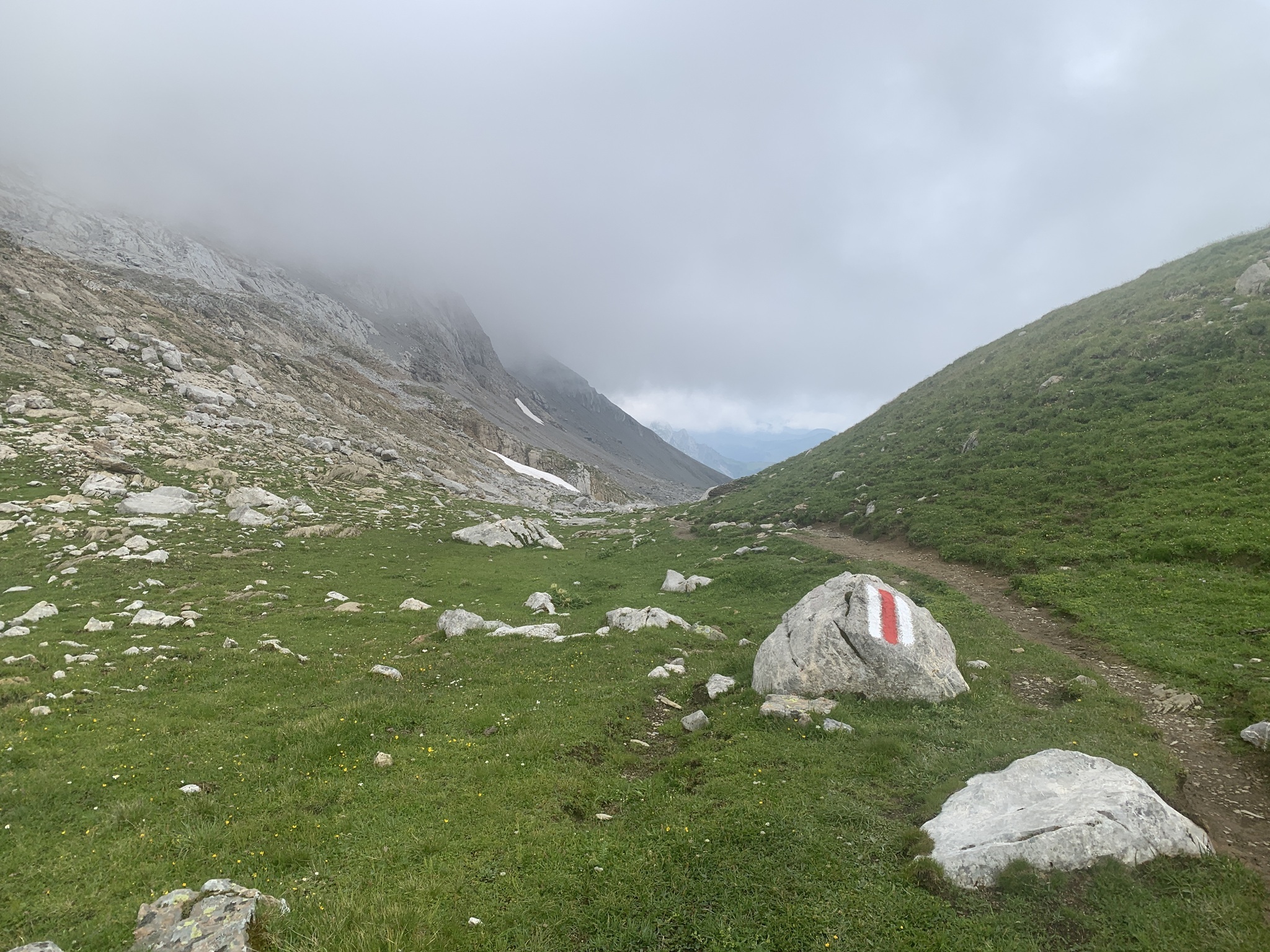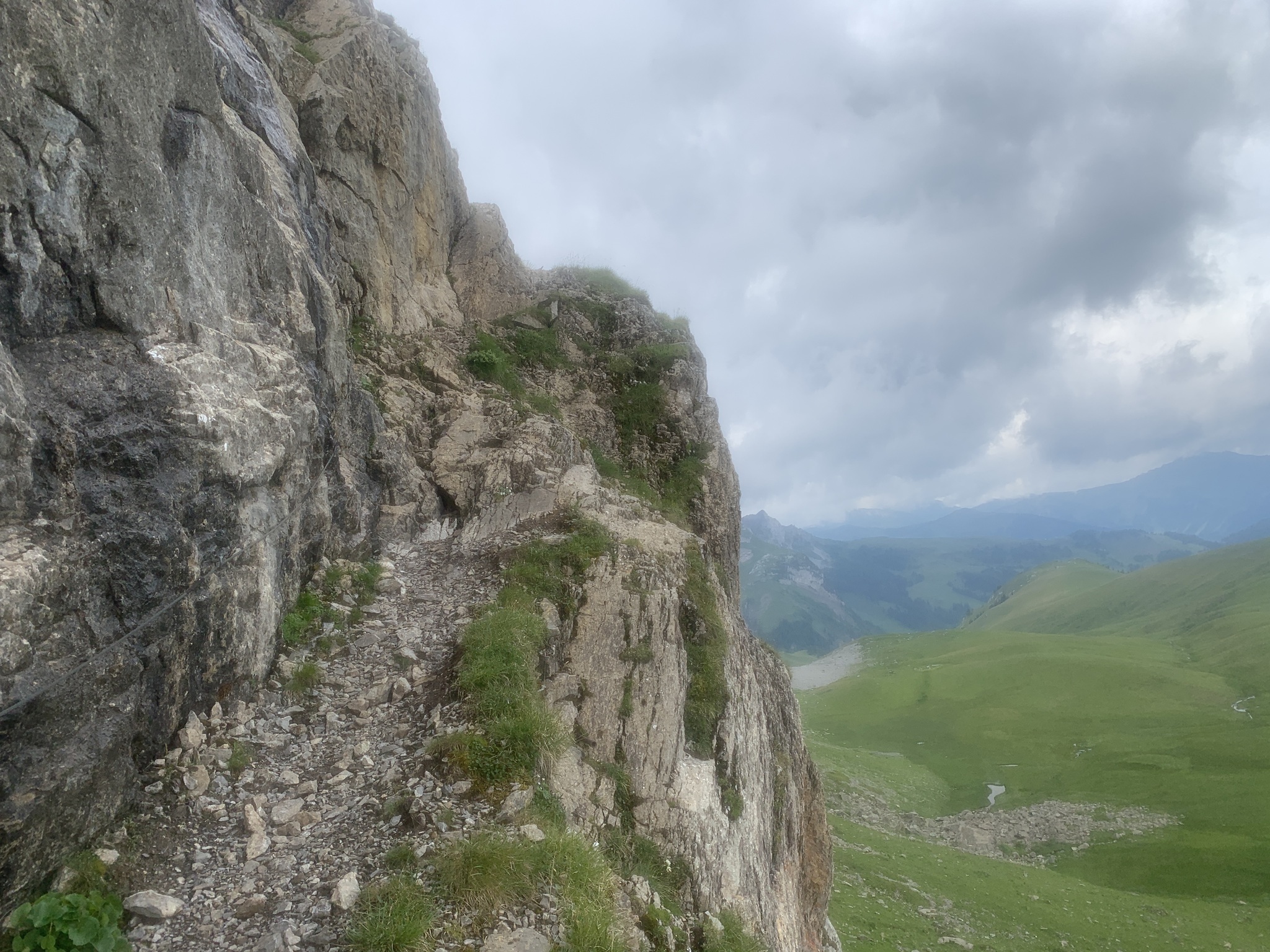 Auf dem Stigel angekommen geht es danach hinunter zum Tungelpass. Ein kurzes Stück ist aufgesetzt aber mit Drahtseilen gesichert. Vom Tungelpass geht es recht flach, mit einer kleinen Ausnahme bis zum Leiterli.