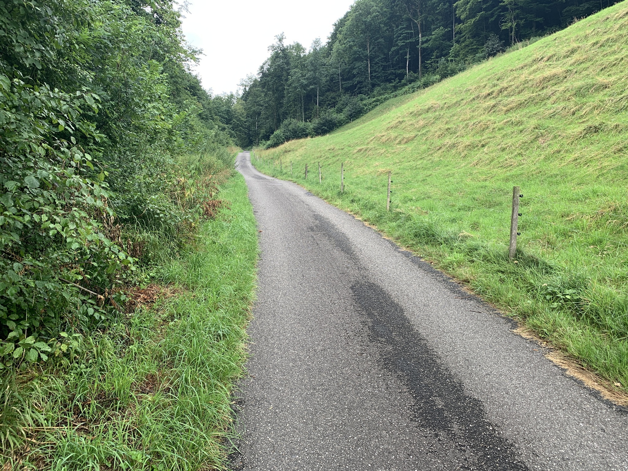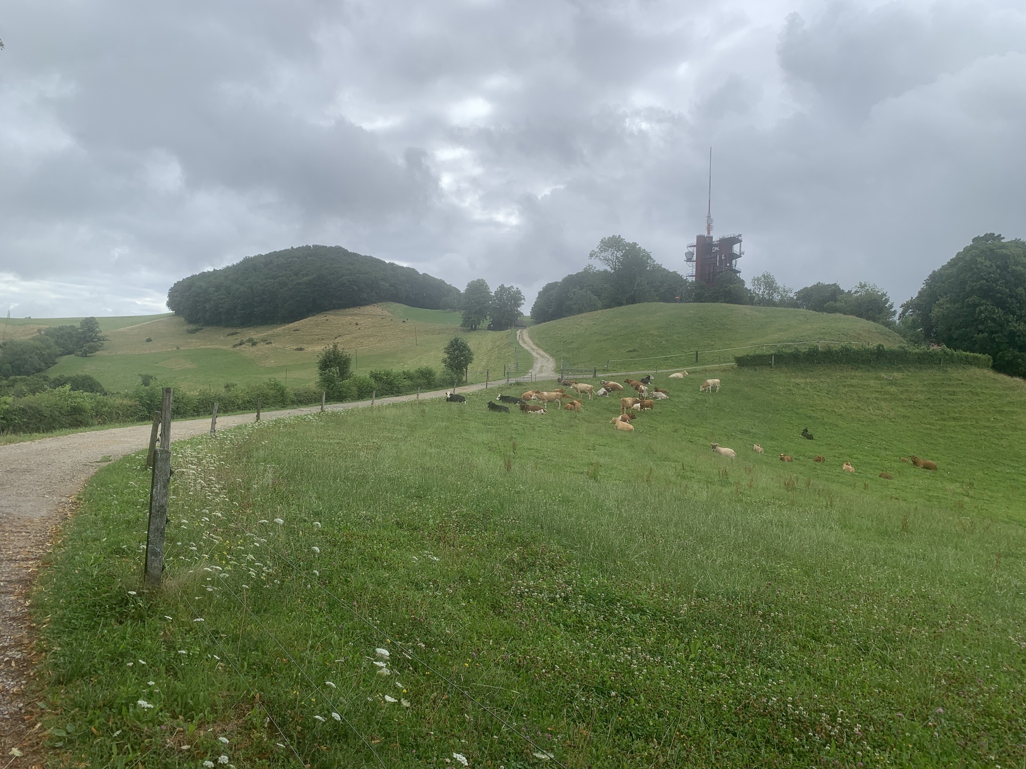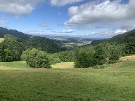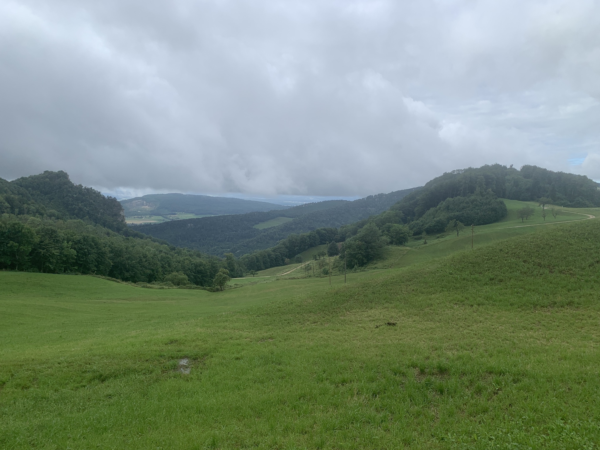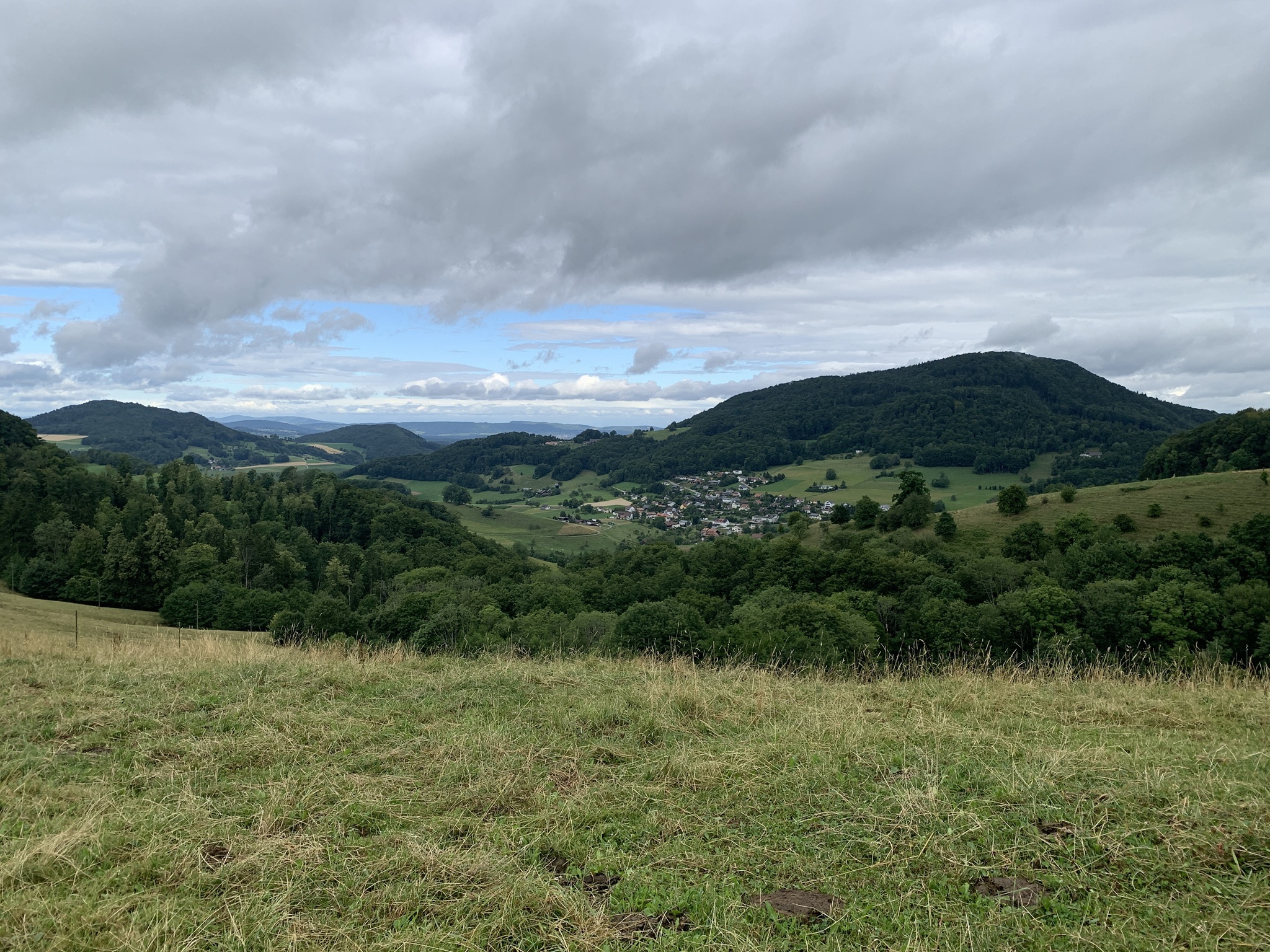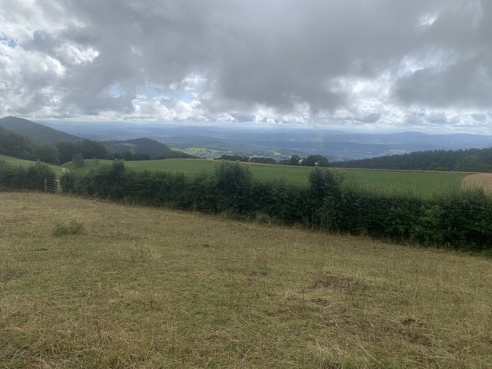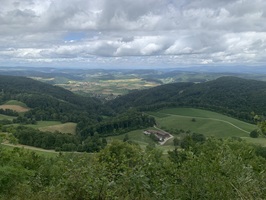 Bei bedecktem Wetter startet ich beim Bahnhof Läufelfingen. Zuerst geht es auf Hartbelag Richtung Hauenstein zum Hof Reisen. Von hier ab geht dann auf auf Mergel- und Wiesenstrassen und danach auf Wanderwegen auf die Hoburg. Bei schönem Wetter ist die Aussicht sicher sehr schön. Aber ich war auf den bedeckten Himmel froh, da bis hier fast alles über offenes Gelänge gegangen ist. Bei Sonnenschein wäre es sehr schweisstreiben gewesen!