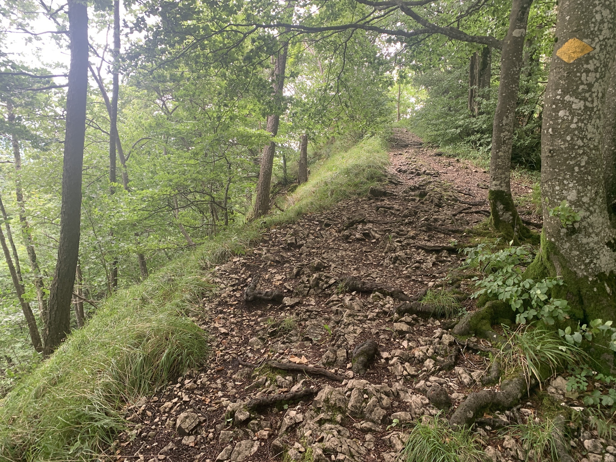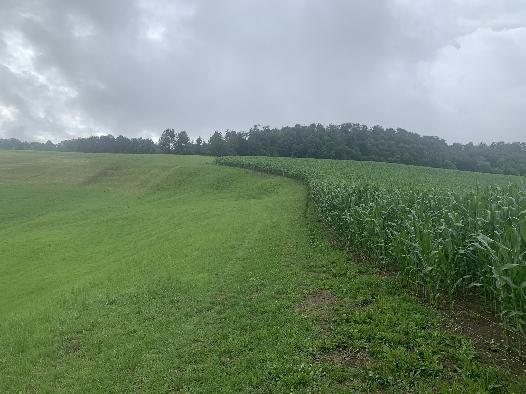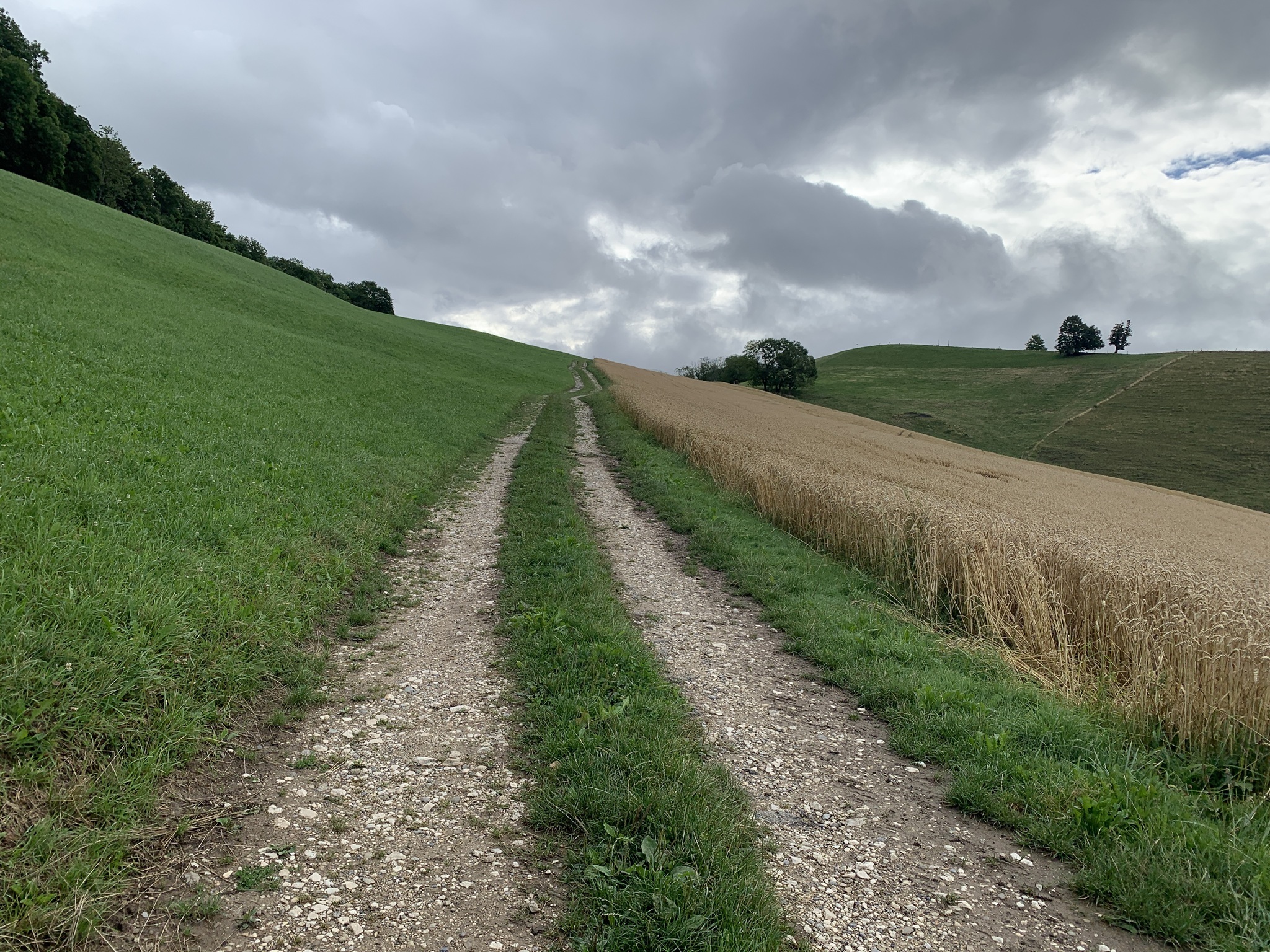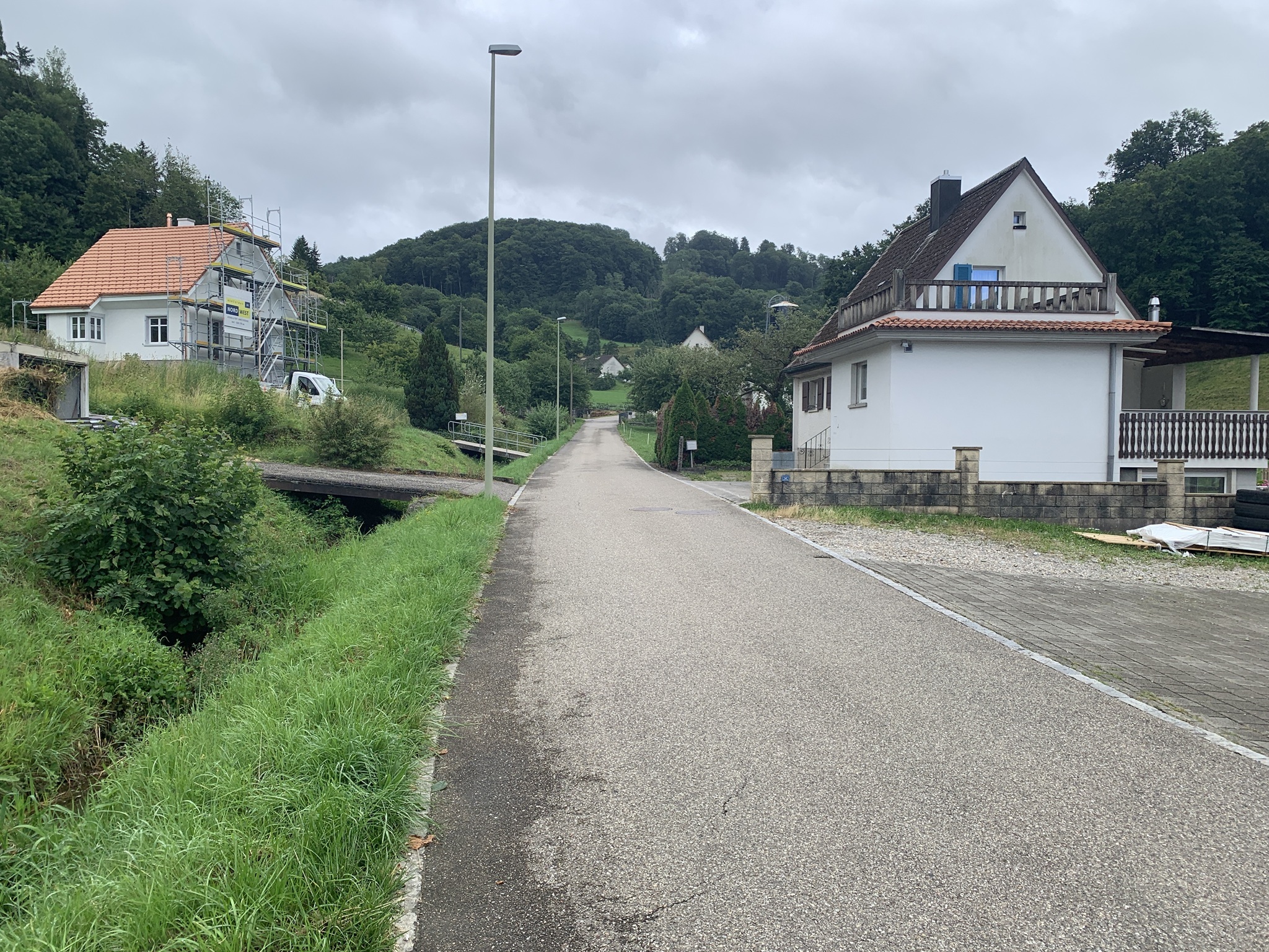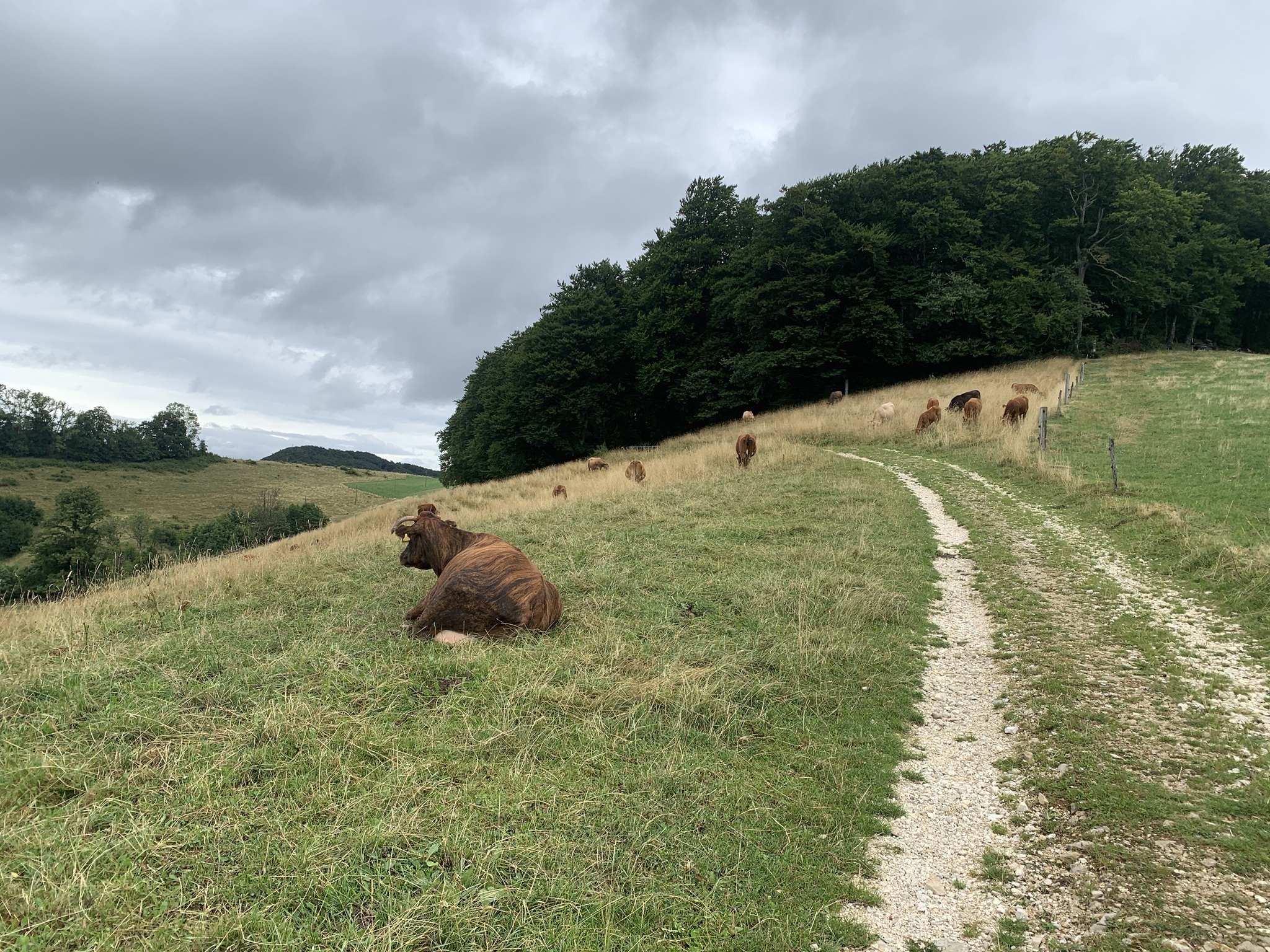 Bei bedecktem Wetter startet ich beim Bahnhof Läufelfingen. Zuerst geht es auf Hartbelag Richtung Hauenstein zum Hof Reisen. Von hier ab geht dann auf auf Mergel- und Wiesenstrassen und danach auf Wanderwegen auf die Hoburg. Bei schönem Wetter ist die Aussicht sicher sehr schön. Aber ich war auf den bedeckten Himmel froh, da bis hier fast alles über offenes Gelänge gegangen ist. Bei Sonnenschein wäre es sehr schweisstreiben gewesen!