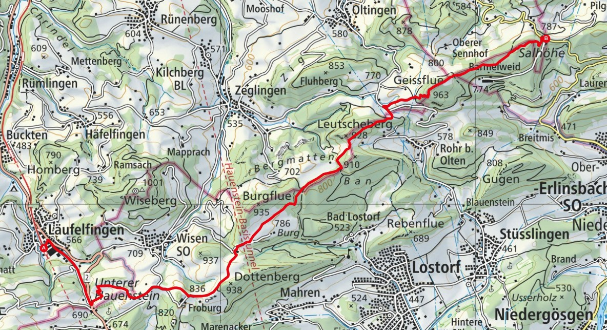 - Route: Läufelfingen - Froburg - Schafmatt - Geisflue - Salhöhe