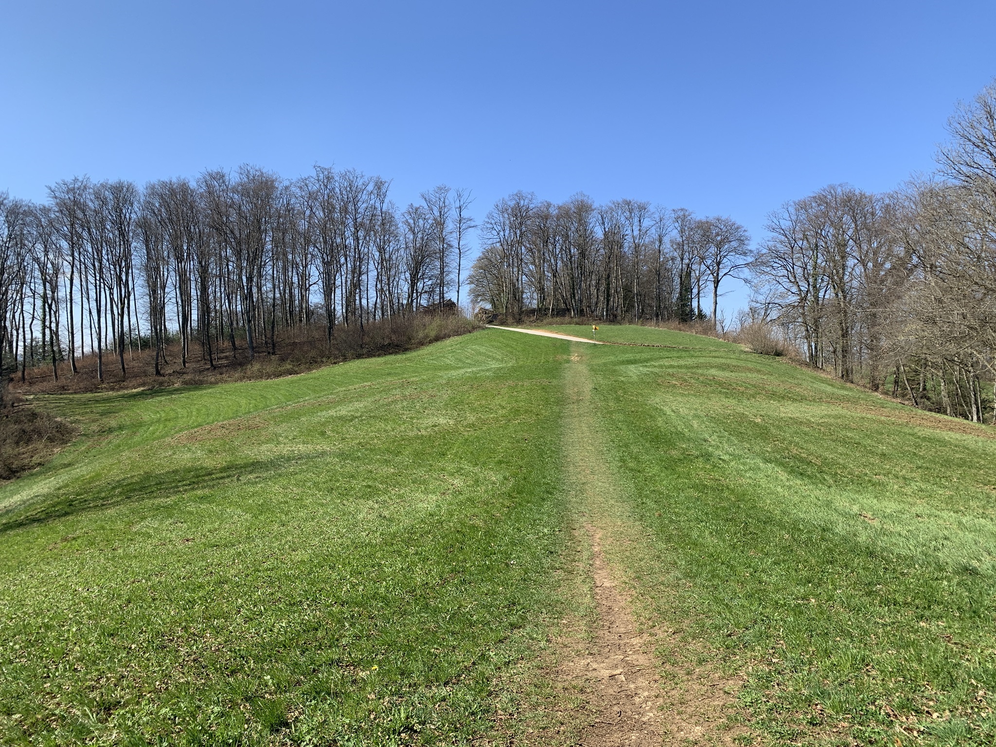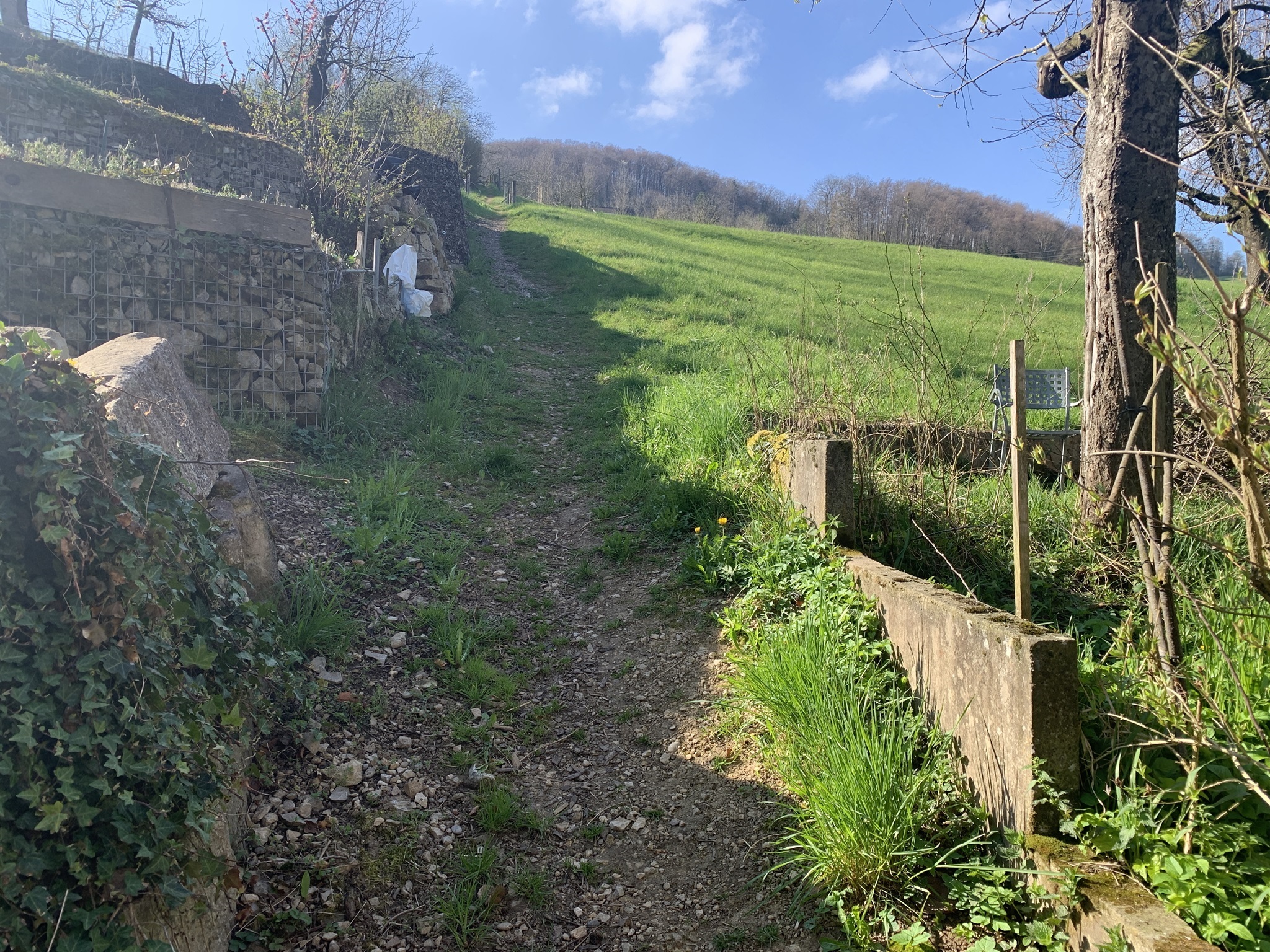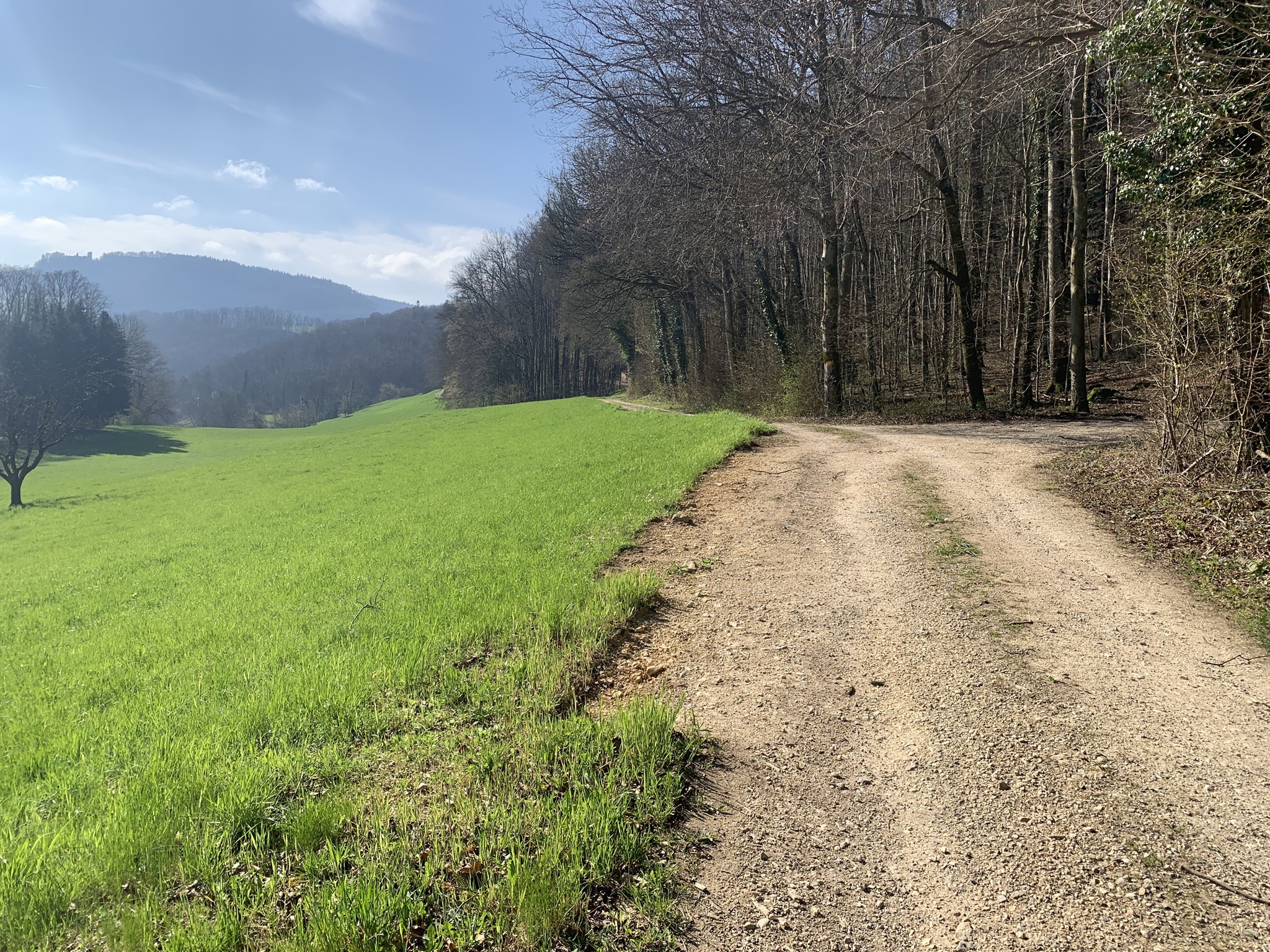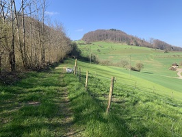 Jetzt folgt der Abstieg, zuerst auf einer geteerten Strasse, danach aber wieder auf Mergelstrassen und schön angelegten Wanderwegen bin hinunter nach Hersberg.