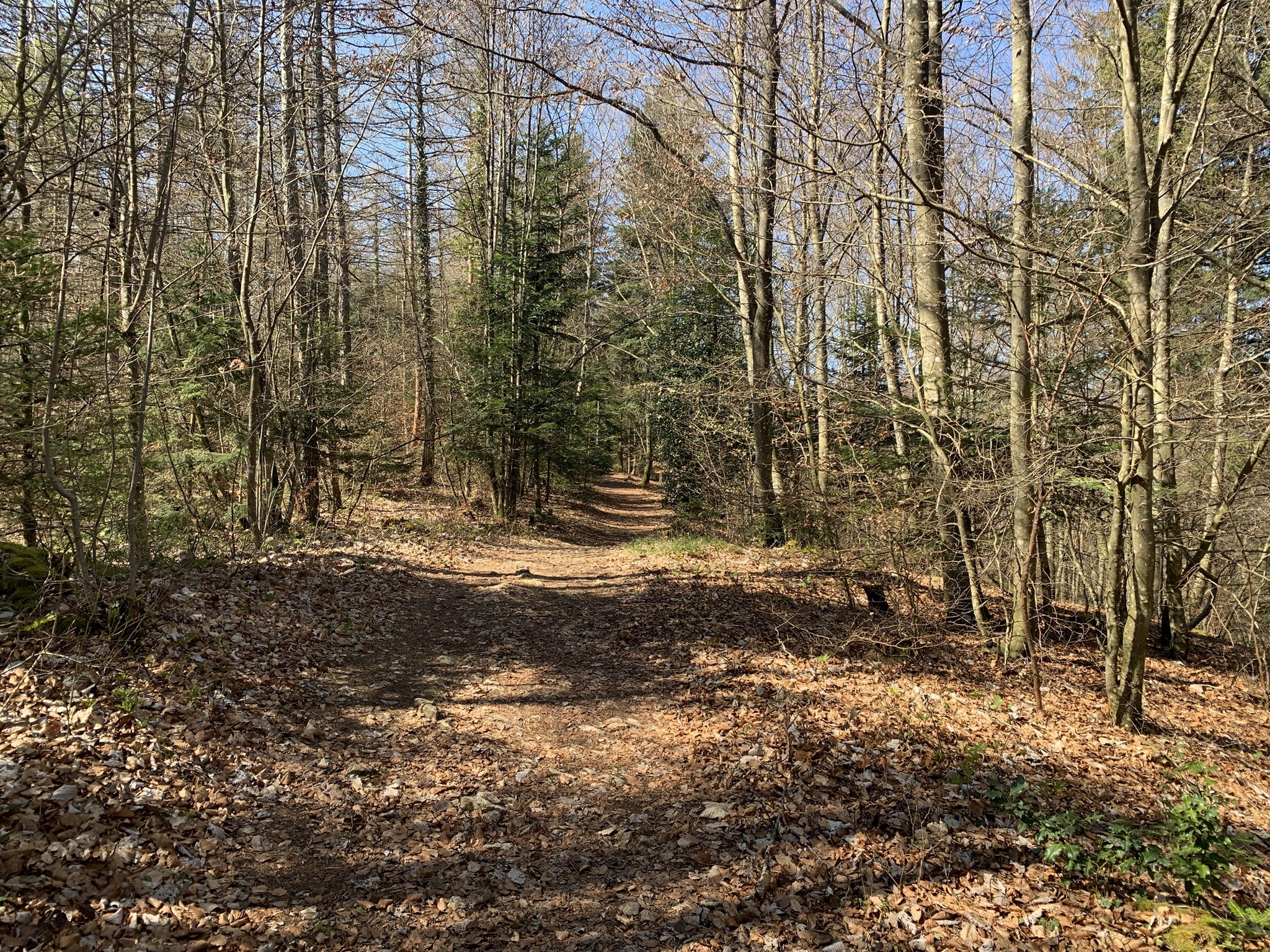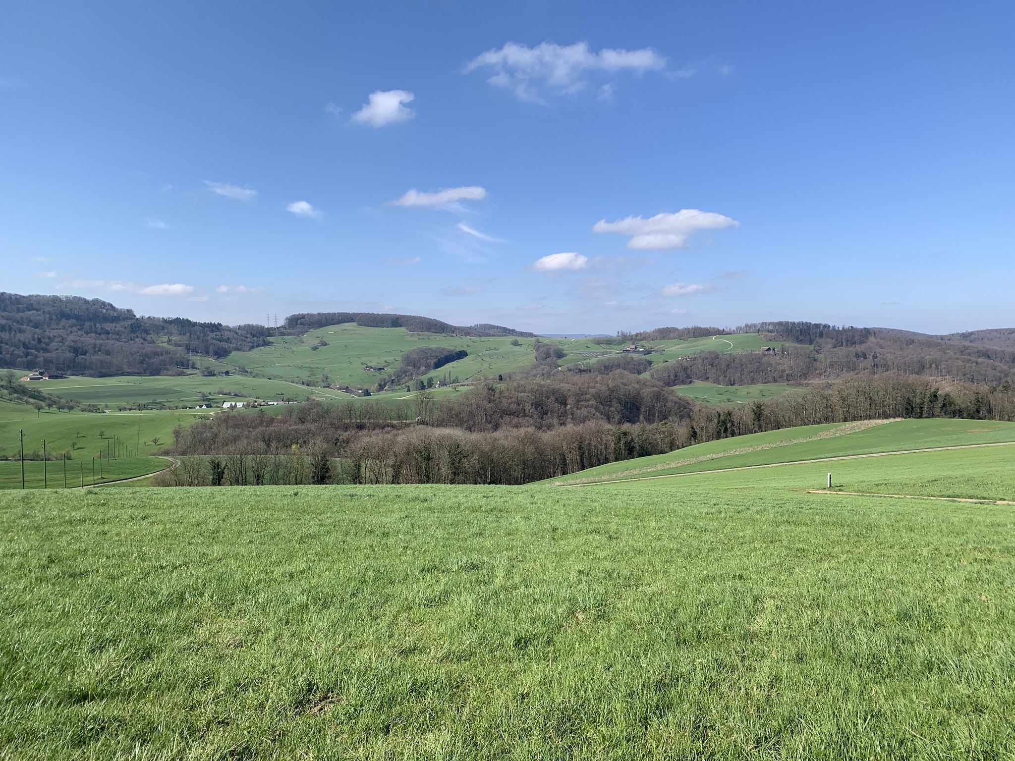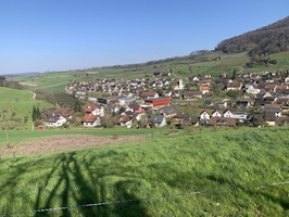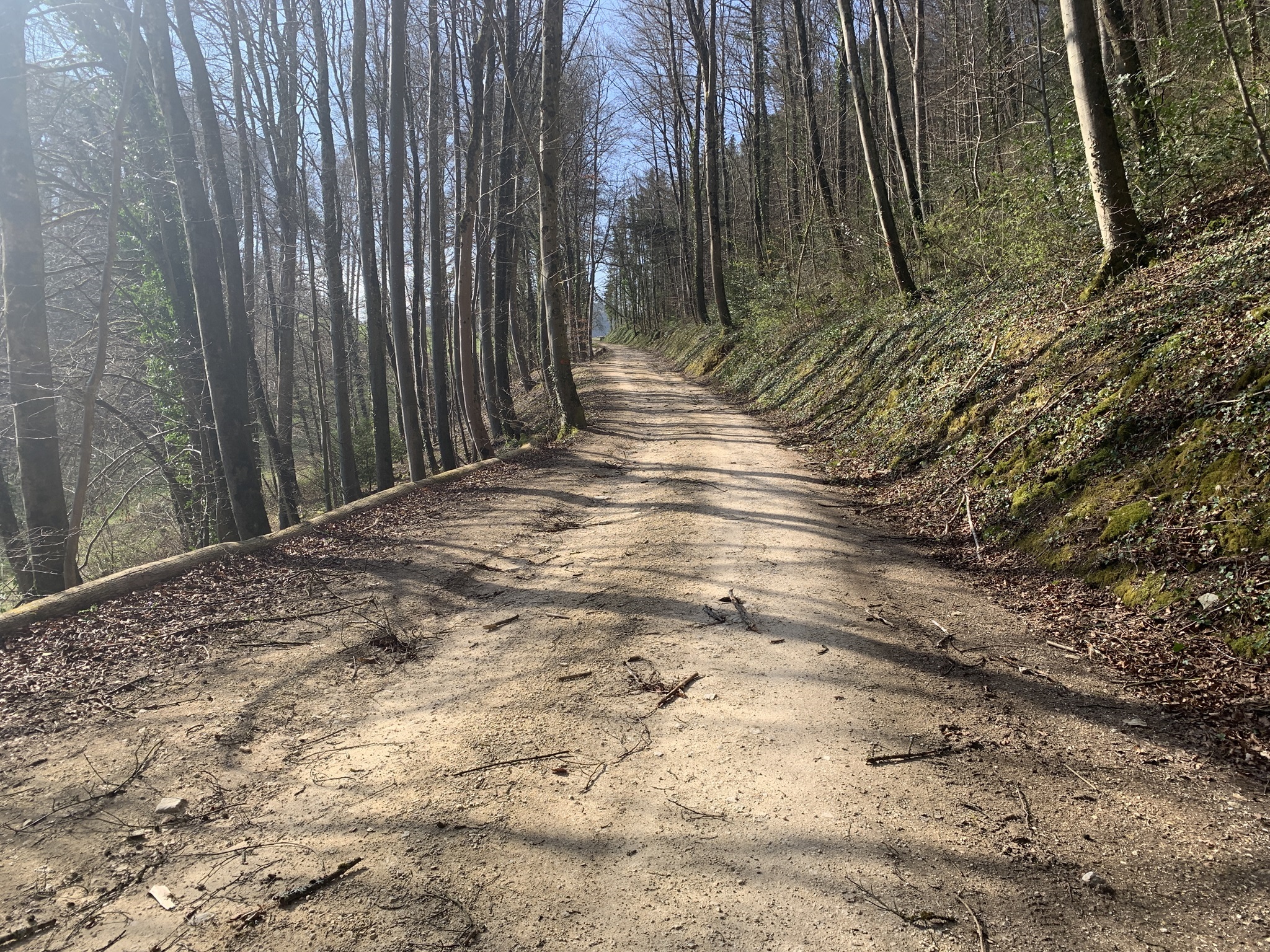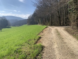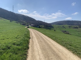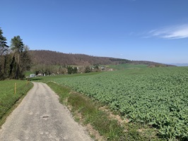 Hier geht es zuerst kurz steil auf einem Feldweg nach oben. Danach folgen Feldstrassen, Waldstrassen und auch geteerte Strassen bis hinauf zur Rickenbacher Höhi. Bis hier ging es sehr moderat nach oben.