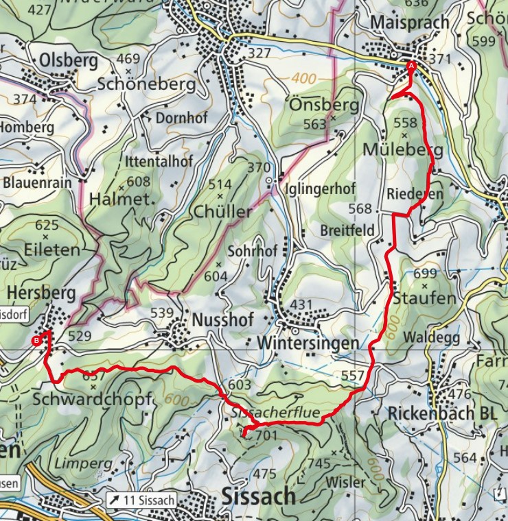 - Route: Maisprach - Stockacker - Rickenbacher Höchi - Sissacherflun - Hersberg