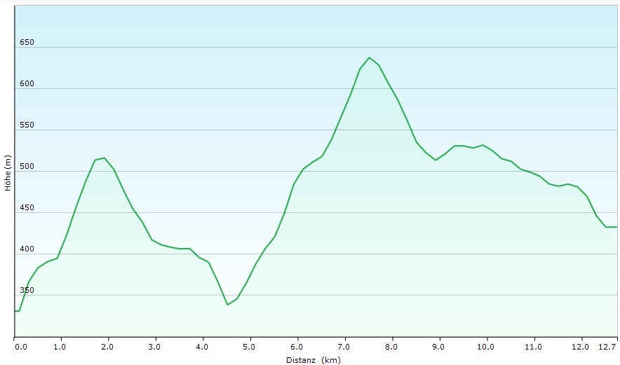 - Höhenmeter: Aufstieg: 595m, Abstieg: 479m (gemäss SchweizMobile)