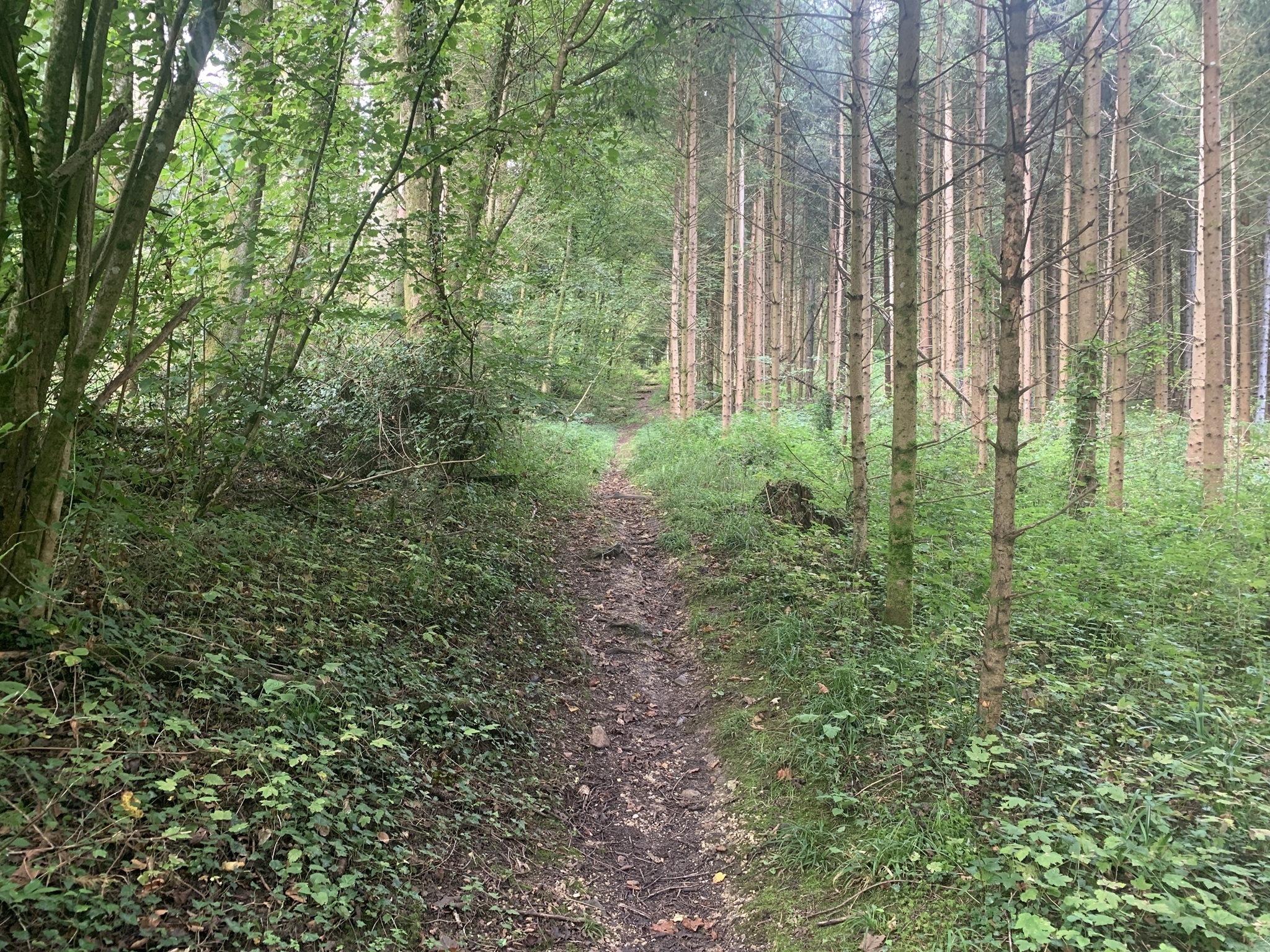Nach dem durchqueren des Dorfes geht es wieder hinauf. Erst auf Mergelstrassen danach auf Wanderwegen bis hinauf auf den Sunnenberg.