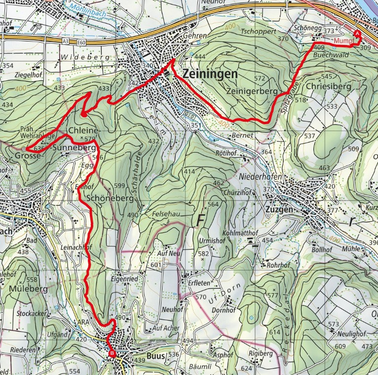 - Route: Mumpf - Zeinigen - Sunnenberg - Buus