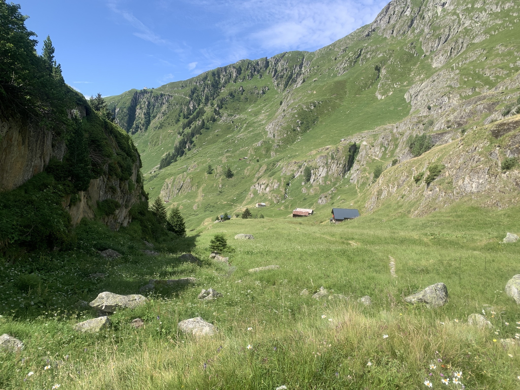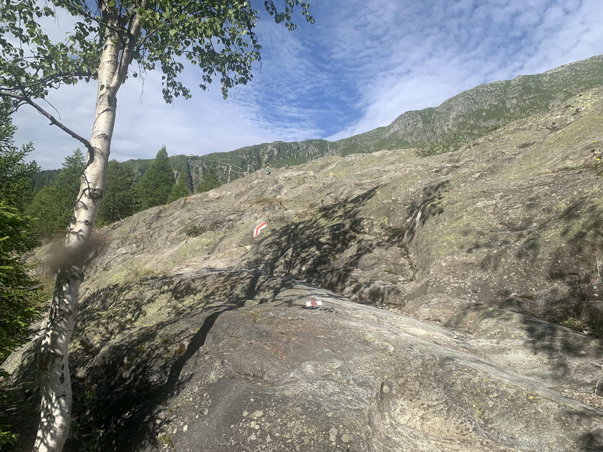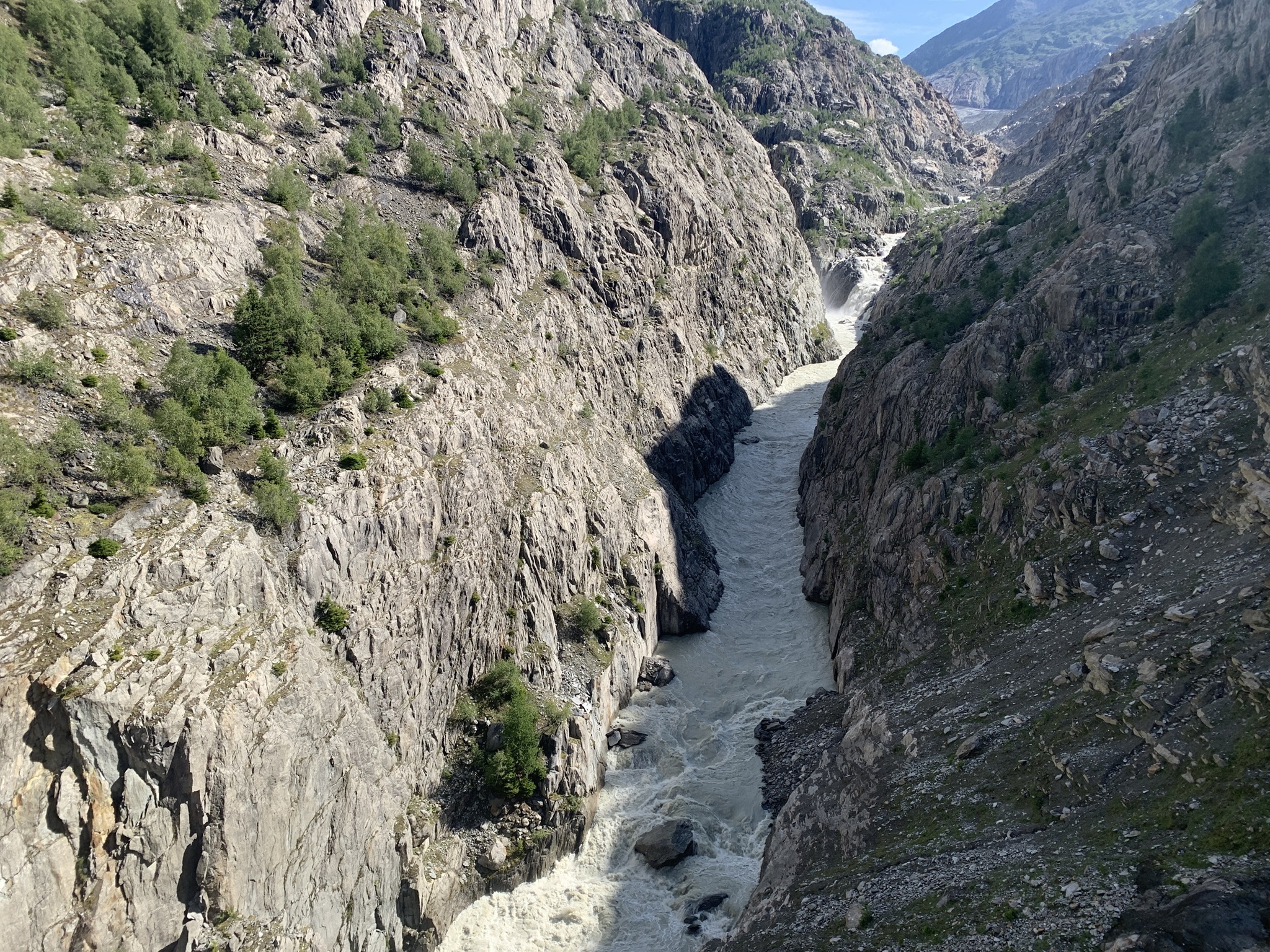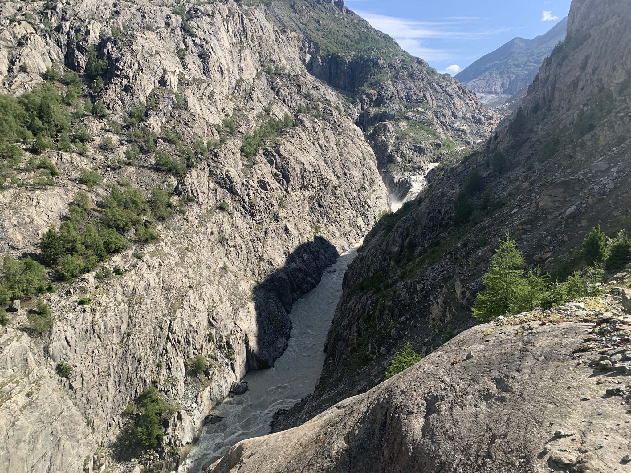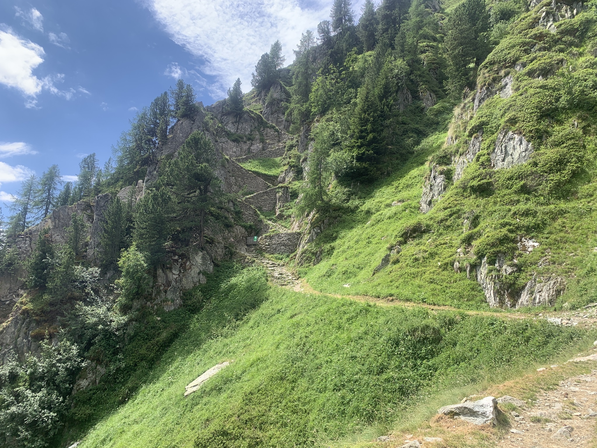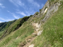 Auch heute ging es zuerst auf die Riederfurka. Aber von hier ging es danach zum Teil sehr steil auf sehr glitschigen Wegen hinunter zu der Hängebrücke. Es hat am Abend davor sehr stark geregnet, daher wirklich sehr rutschig.
