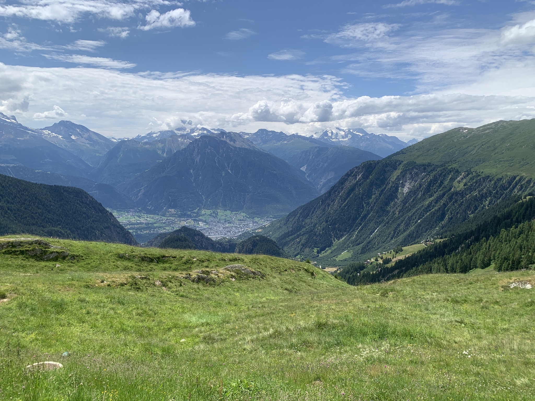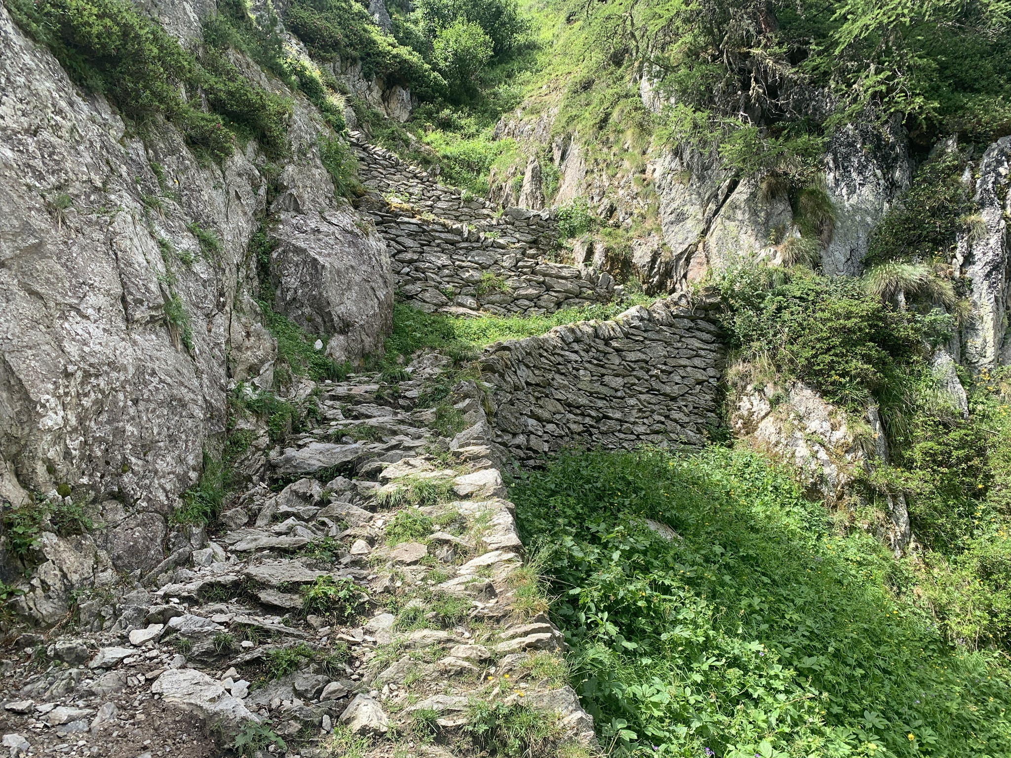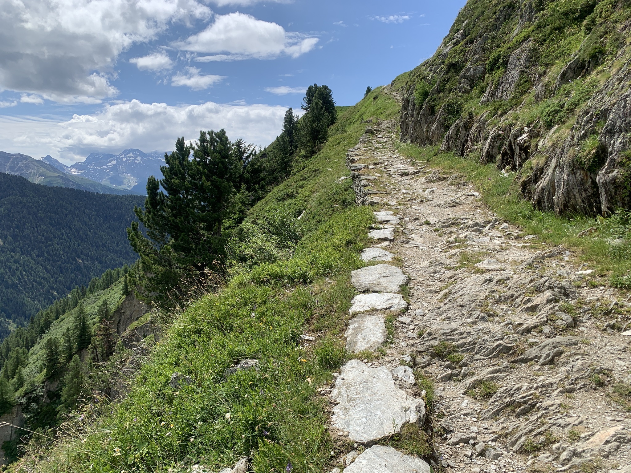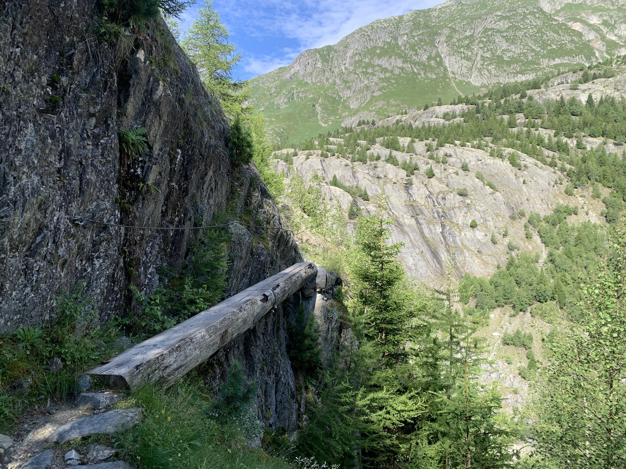 Die Überquerung der Massa auf der Hängebrücke war für mich kein Problem. Danach geht es über Gletschermuränen wieder hoch. Danach folgen Wege durch Wälder und dann über Bergwanderwege. Fast zu oberst geht es noch einmal sehr steil auf einem Zik-Zak-Weg nach oben. Aber die Aussicht ist immer traumhaft!!