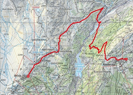 - Route: Riederalp - Hängebrücke - Belalp