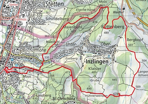 - Route: Riehen - eiserne Hand - Buttenberg - Rührberg - Chrischona - Riehen