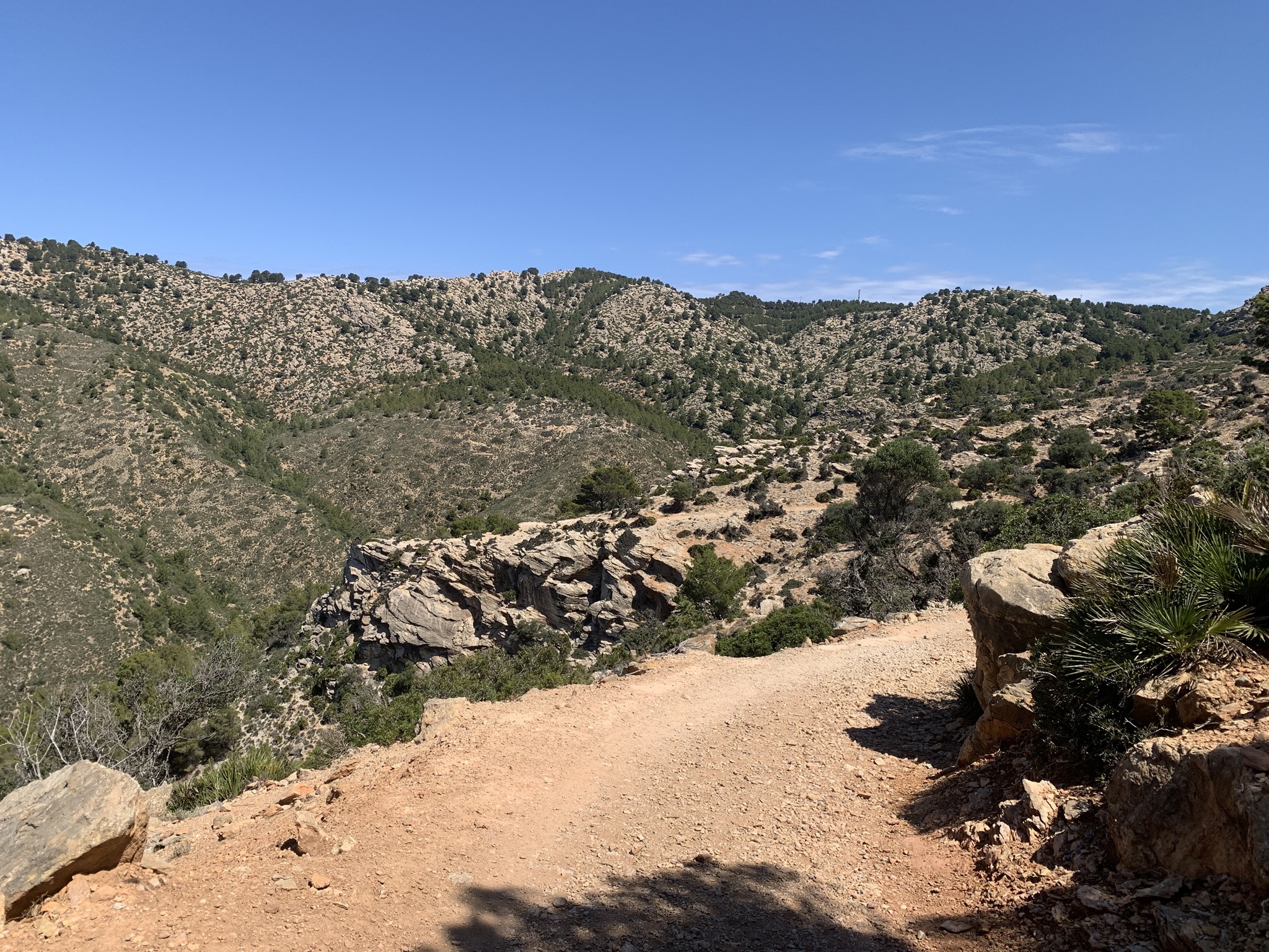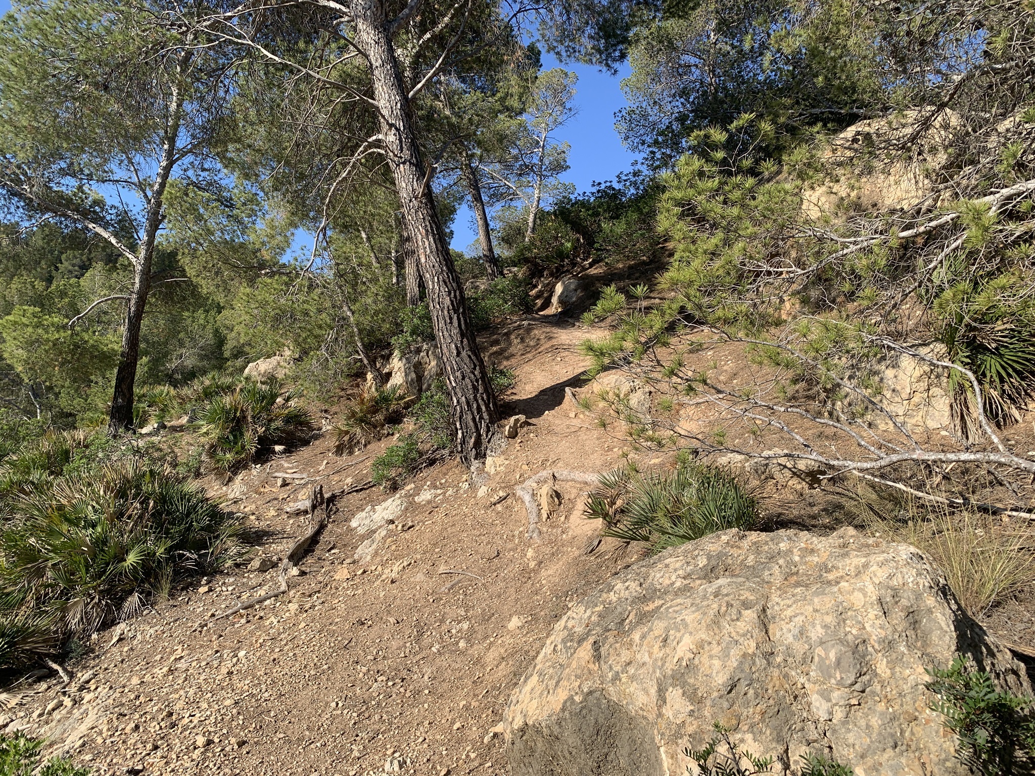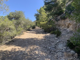 Jetzt folgt ein Felsenweg und danach geht es zuerst steil hinunter. Danach folgt eine Schotterstrasse die wieder hinunter nach Sant Elm geht.