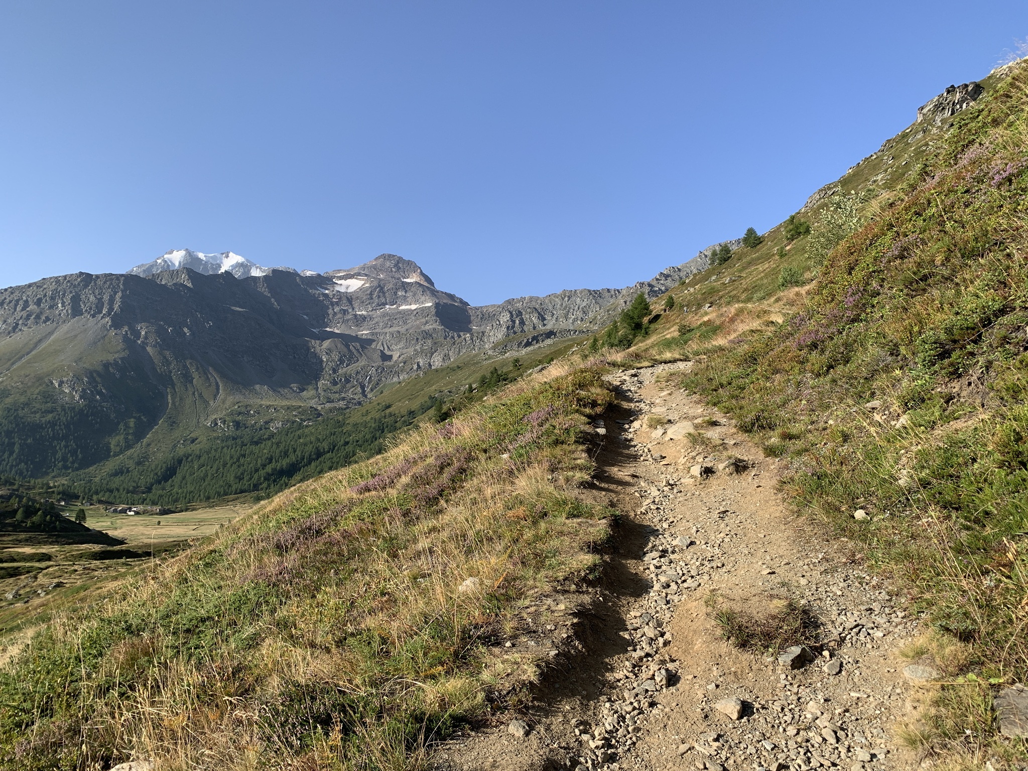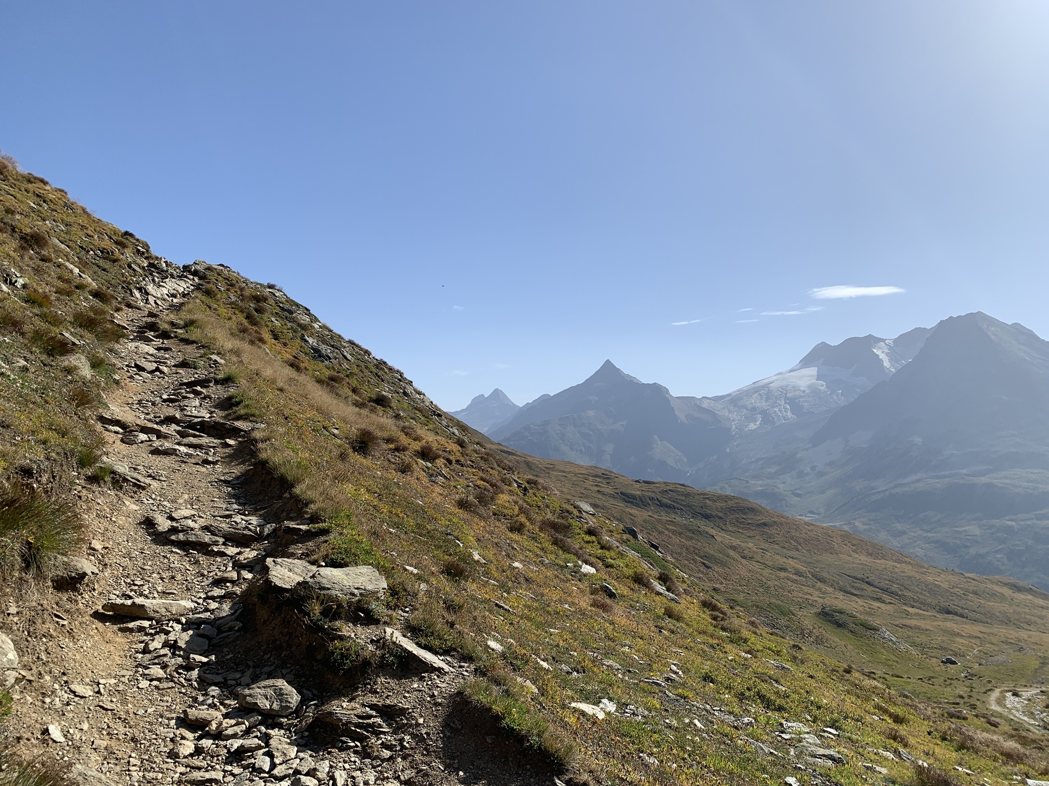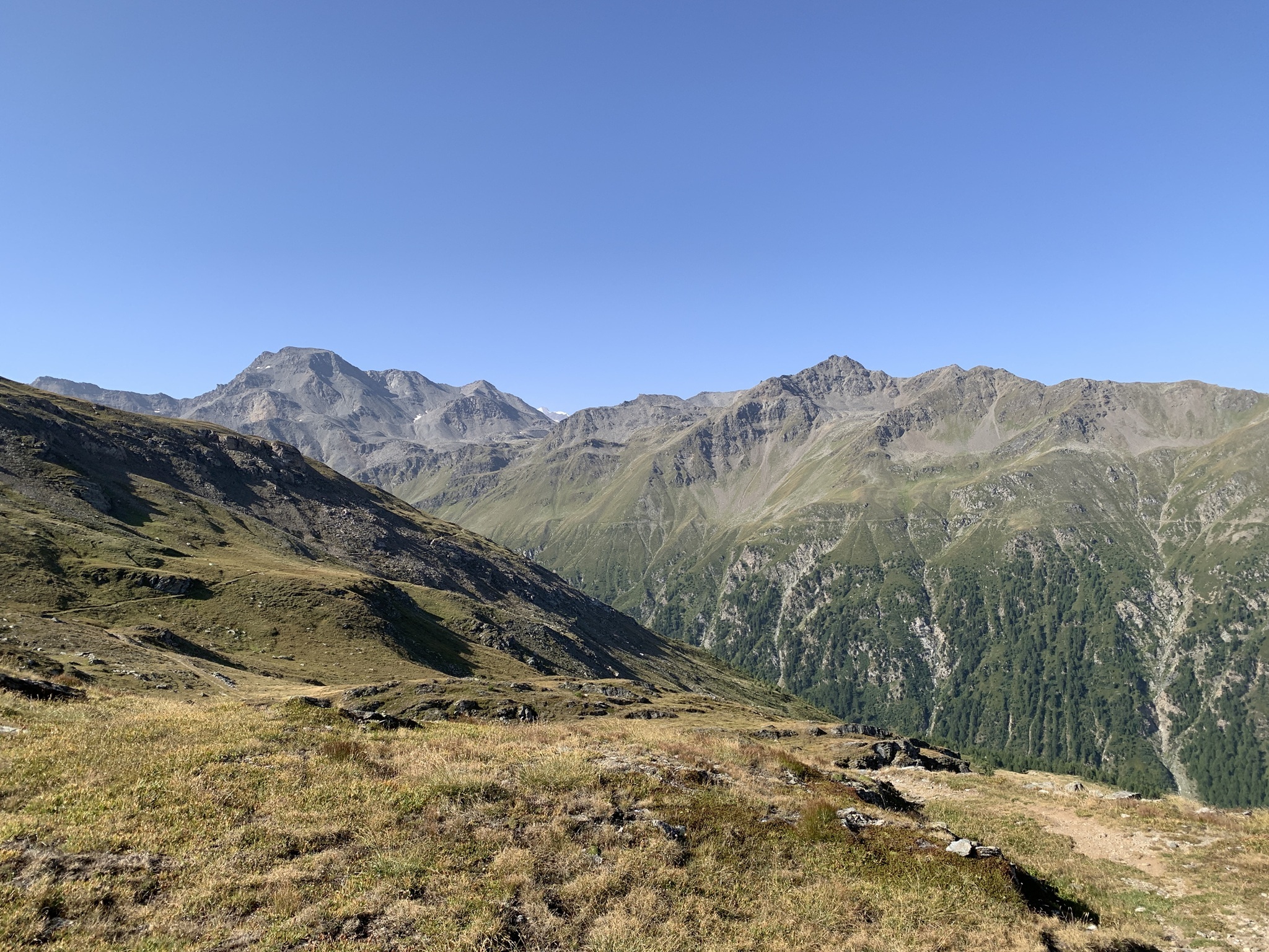 Von hier steigt der Wanderweg stetig bis auf den Bistinepass an. Die Aussicht von da oben ist schon grossartig!