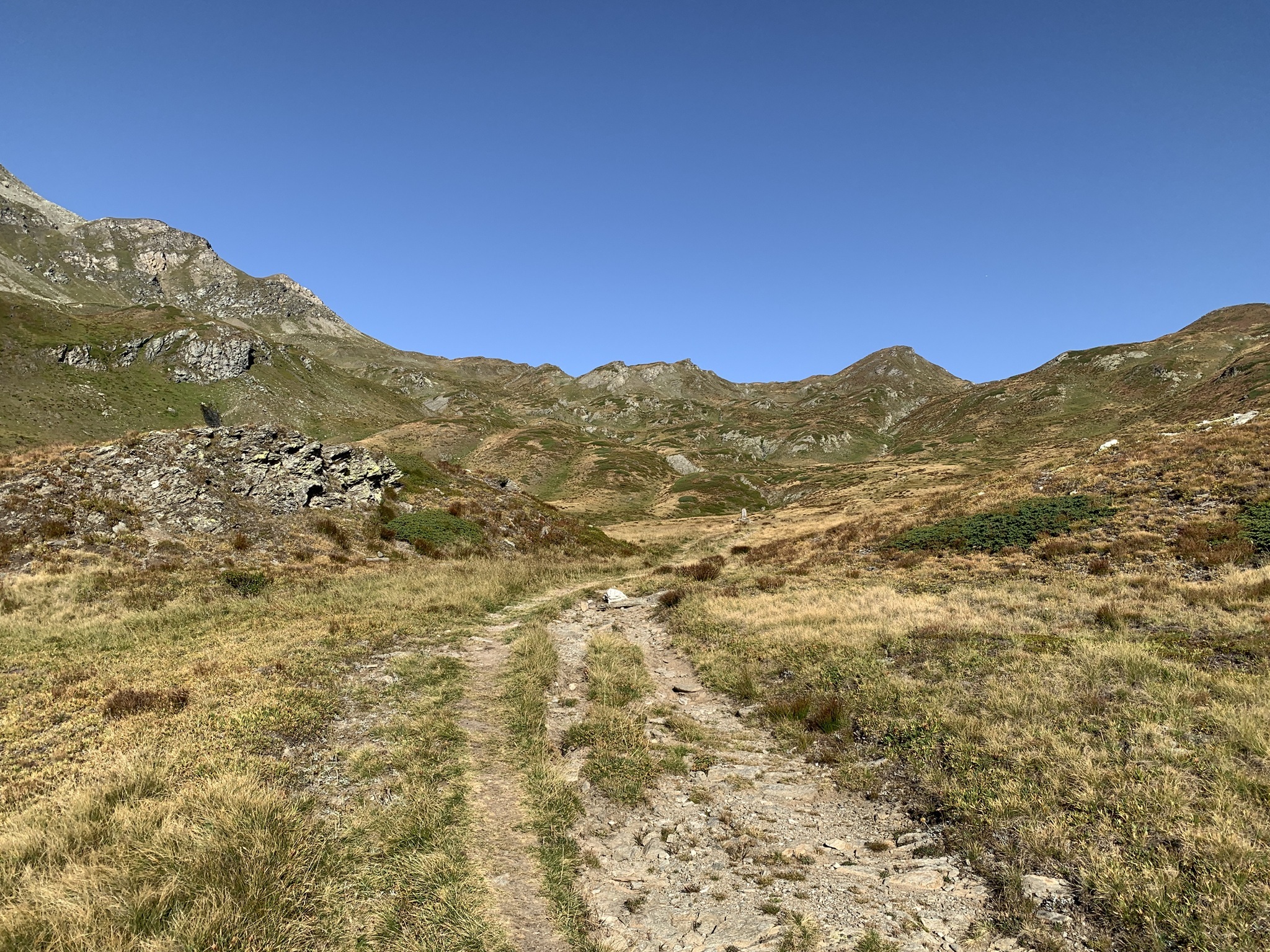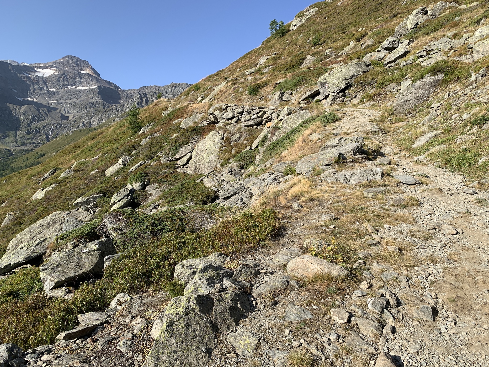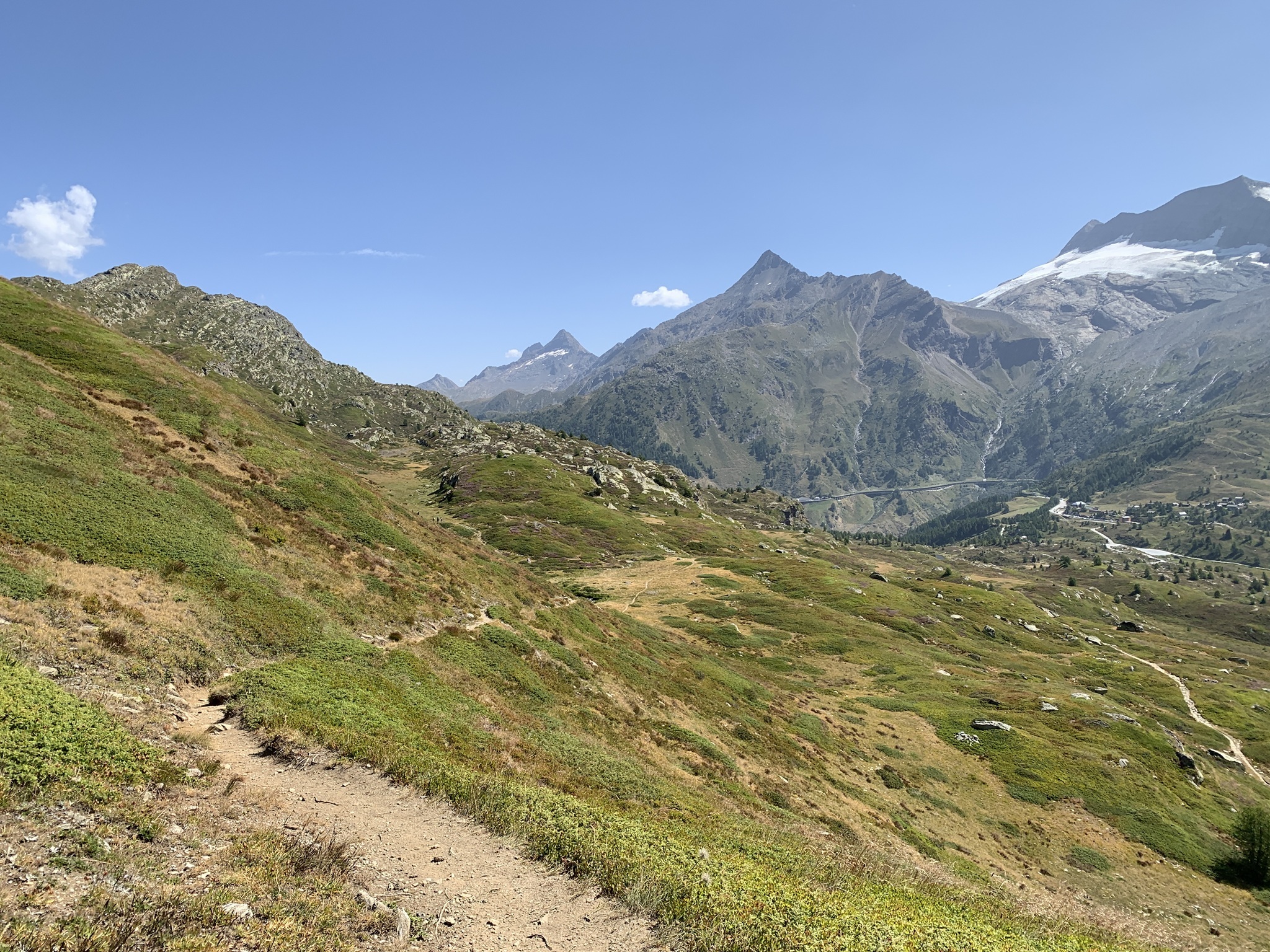 Von hier steigt der Wanderweg stetig bis auf den Bistinepass an. Die Aussicht von da oben ist schon grossartig!