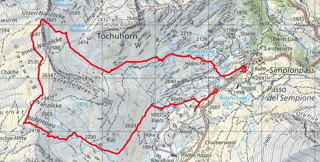 - Route: Simplon - Bistinepass - Staffolsee - üsseri Nanzlicke - Simplon
