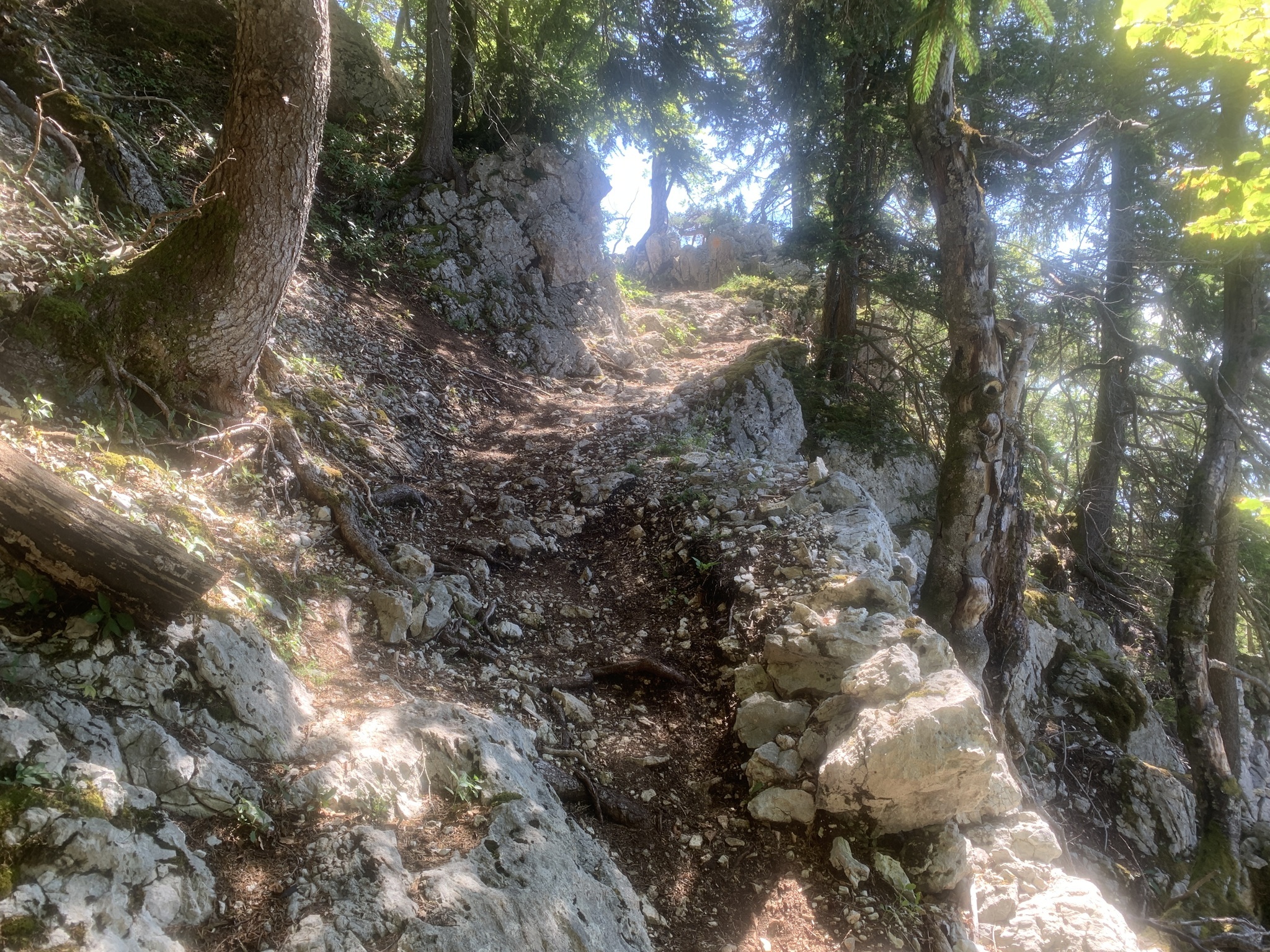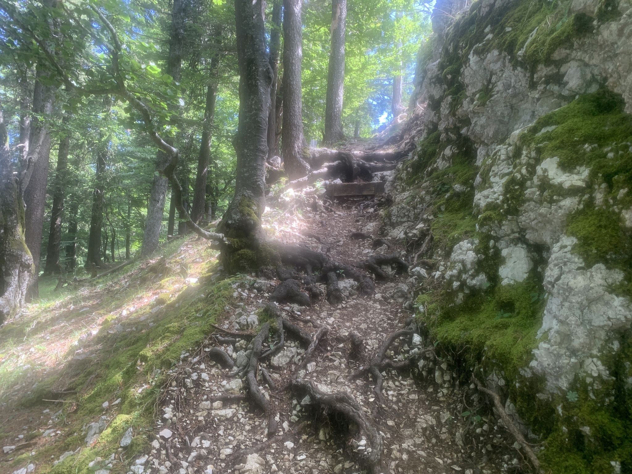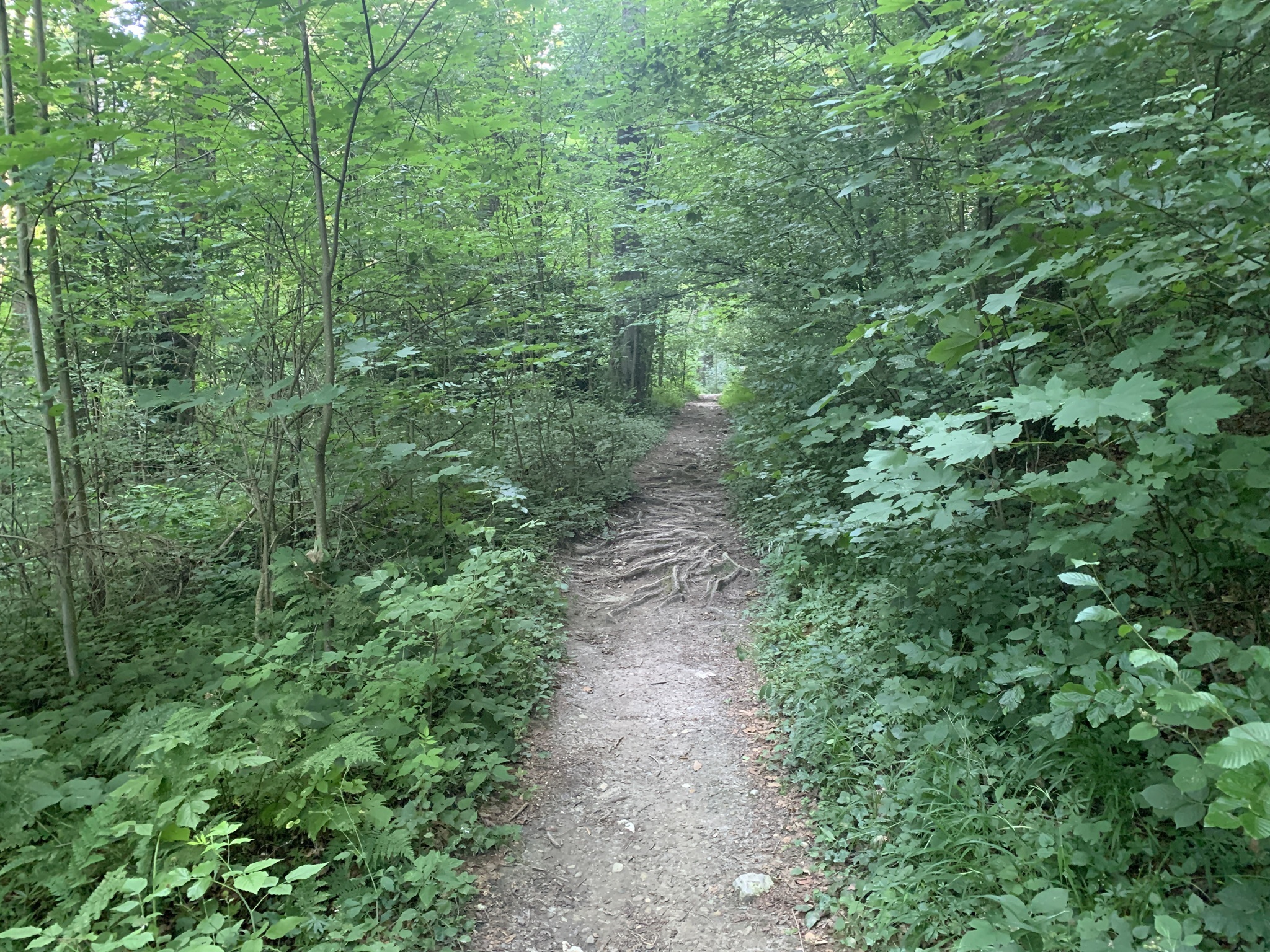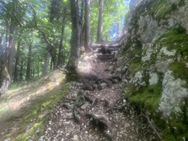 Danach folgt der Aufstieg zum Balmfluhchöpfli. Es geht alles durch den Wald auf schmalen und steilen Wegen über Wurzeln und Steine.