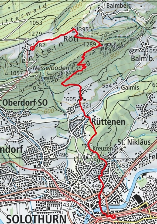 - Route: Sololthurn - Balmfluehschäpfli - Röti - Weissenstein