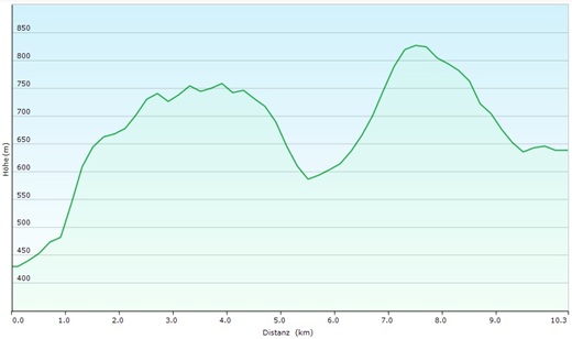- Höhenmeter: Aufstieg: 724m, Abstieg: 518m (gemäss SchweizMobile)