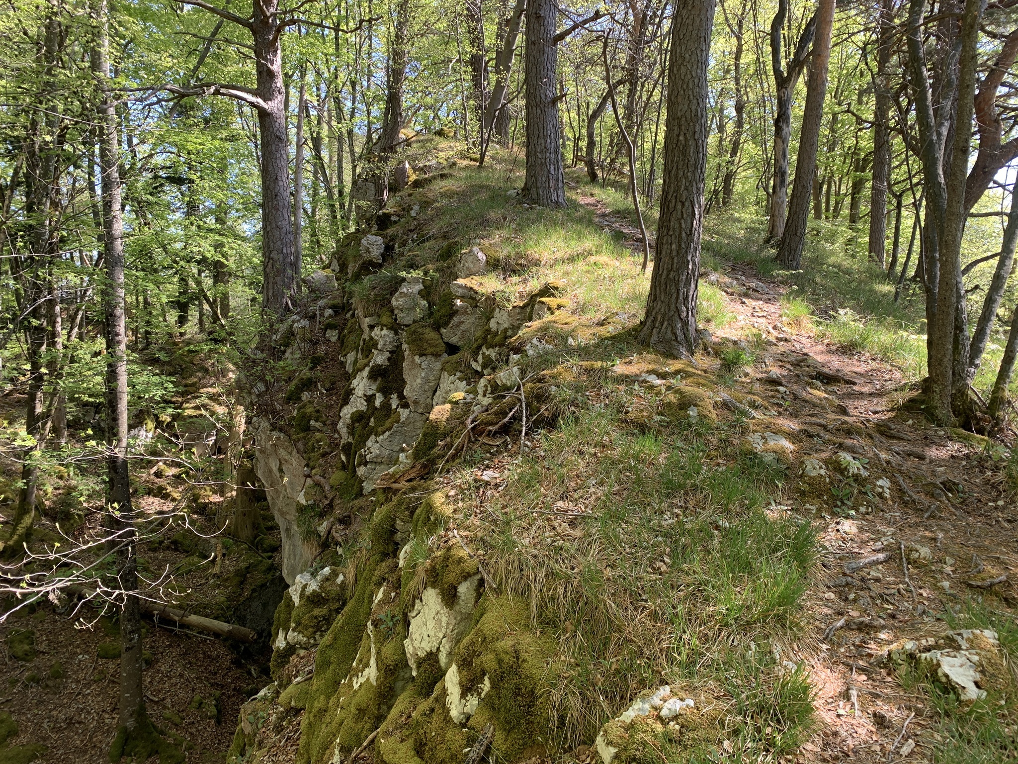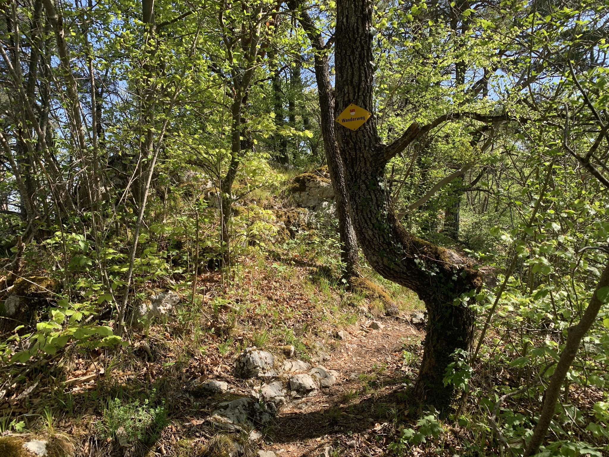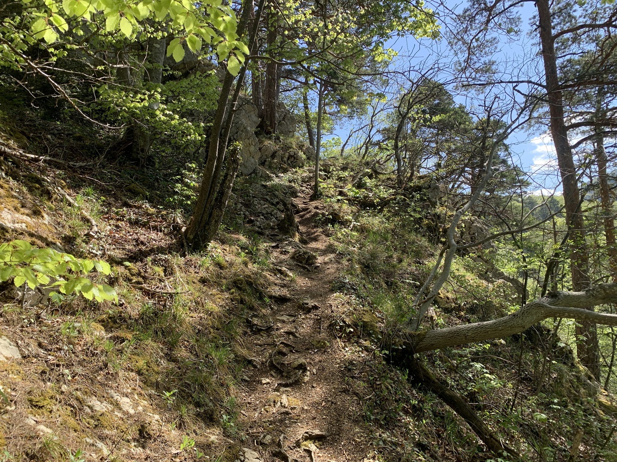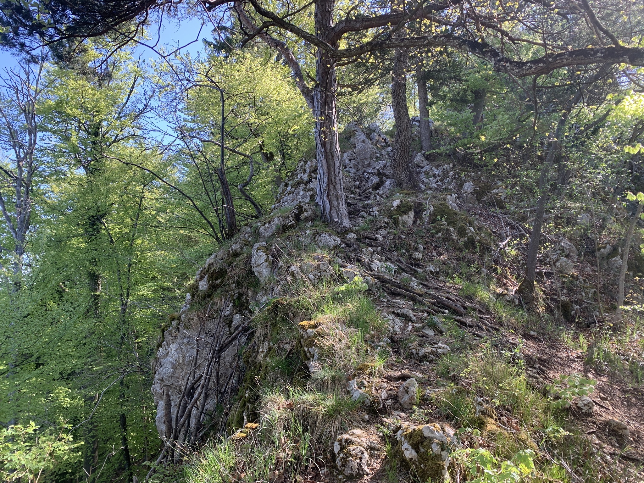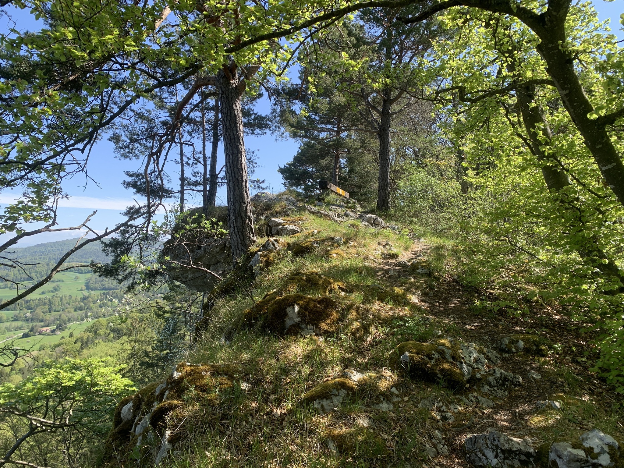 Auf der Krete angekommen geht es über Wurzeln und Steine und zwischen Felsen weiter auf den Lingenberg. Hier hat man wieder einen sehr schönen Weitblick.