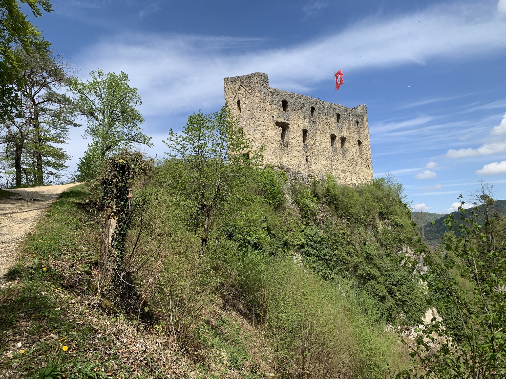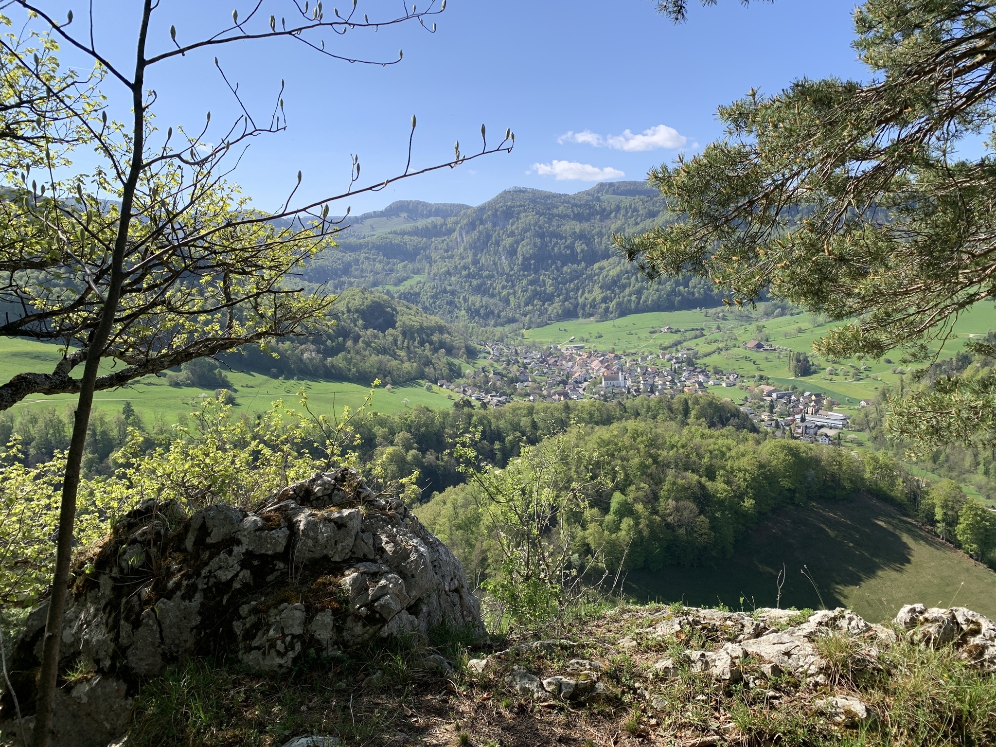 Zuerst geht es gemütlich Richtung Burgruine Neu Thierstein. Von hier ab geht es sehr steil und auf einem zum Teil sehr schmalten Weg hinauf zur Chemiflue. Oben belohnt man sich mit einem schönen Weitblick.
