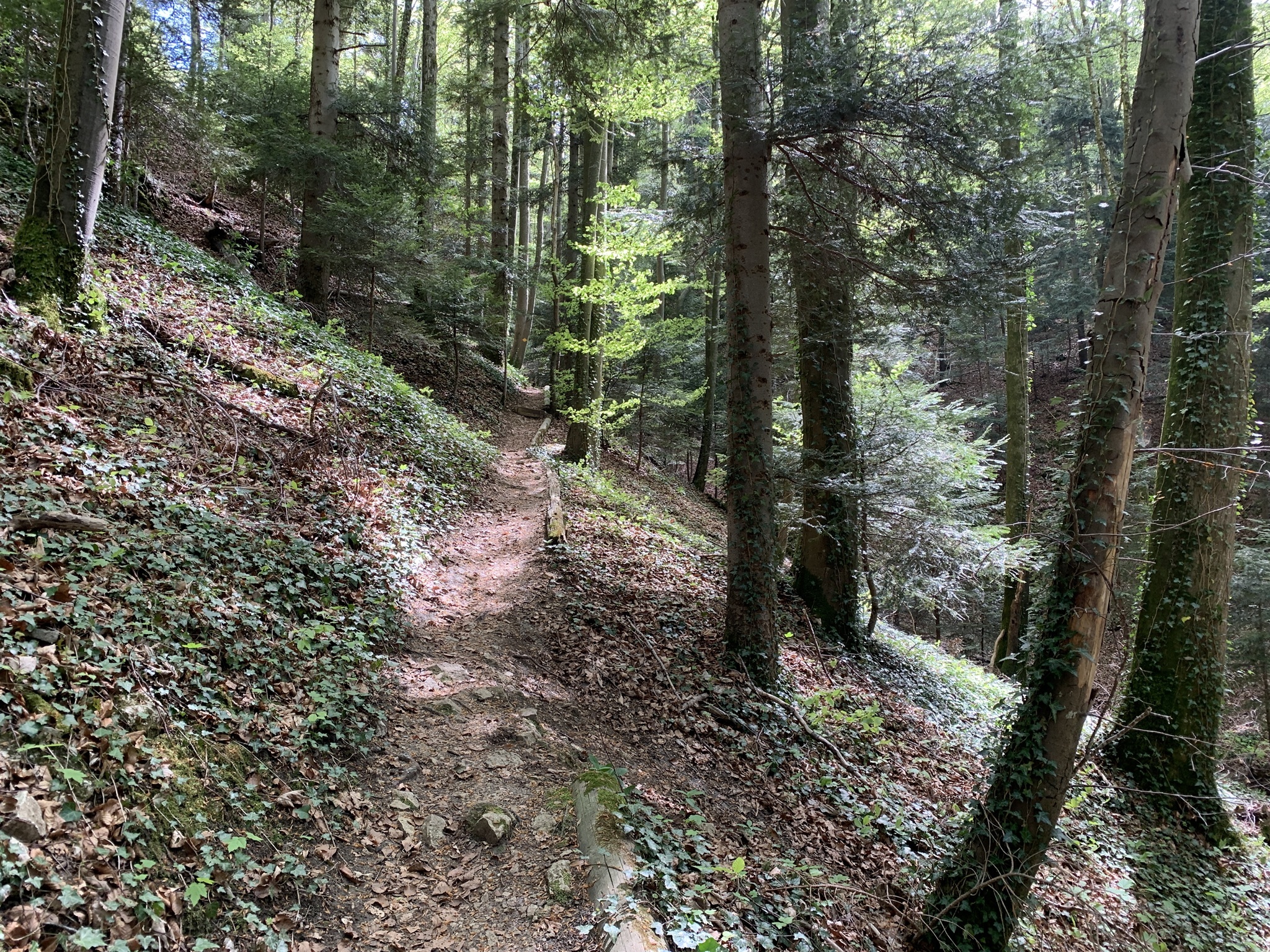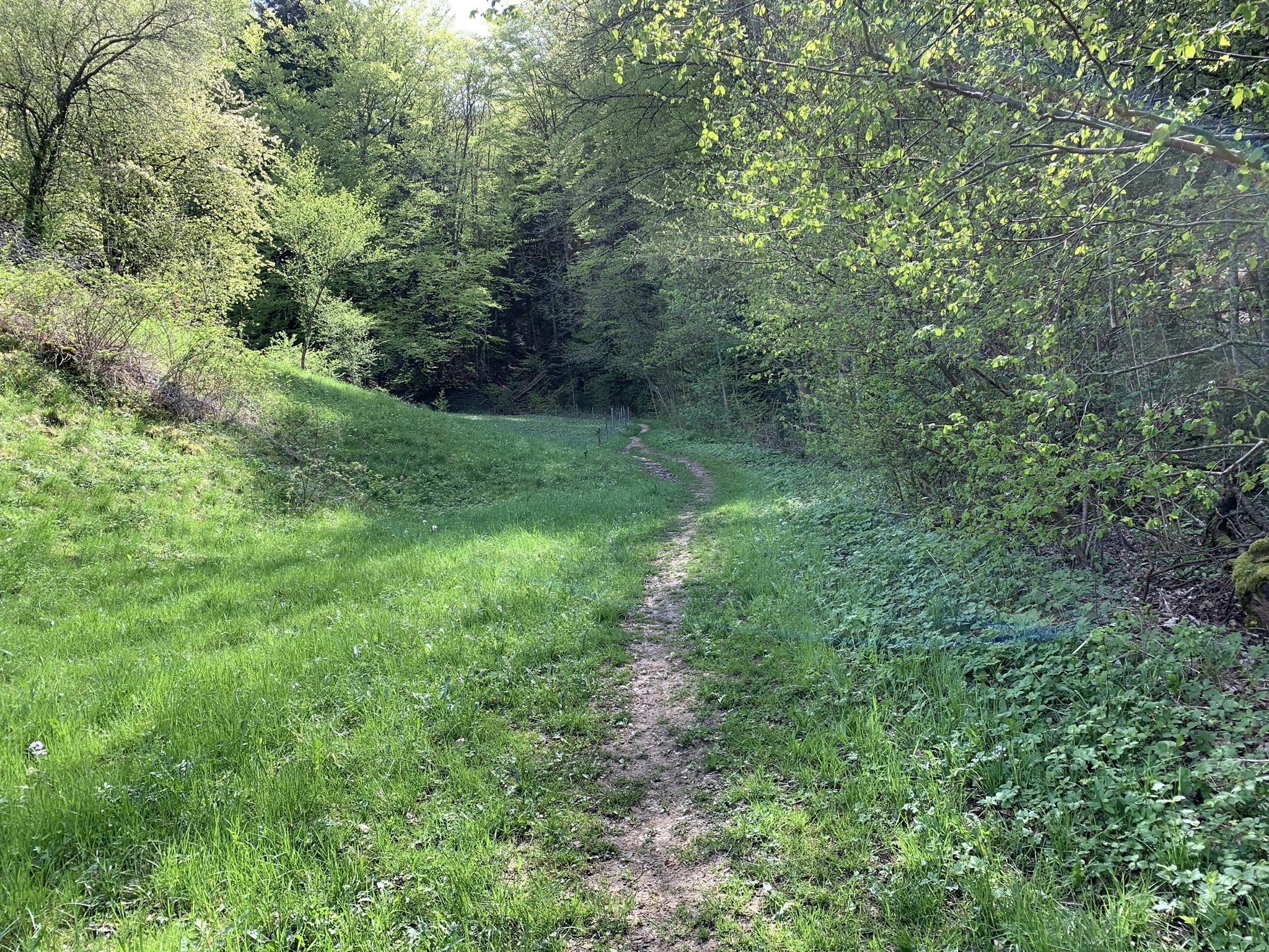 Jetzt folgt der Abstieg nach Meltingen. Unten geht es kurz über Hartbelag, aber schon kurz nach dem Dorf geht es wieder auf einem Waldwanderweg hinauf zum Meltingerberg.