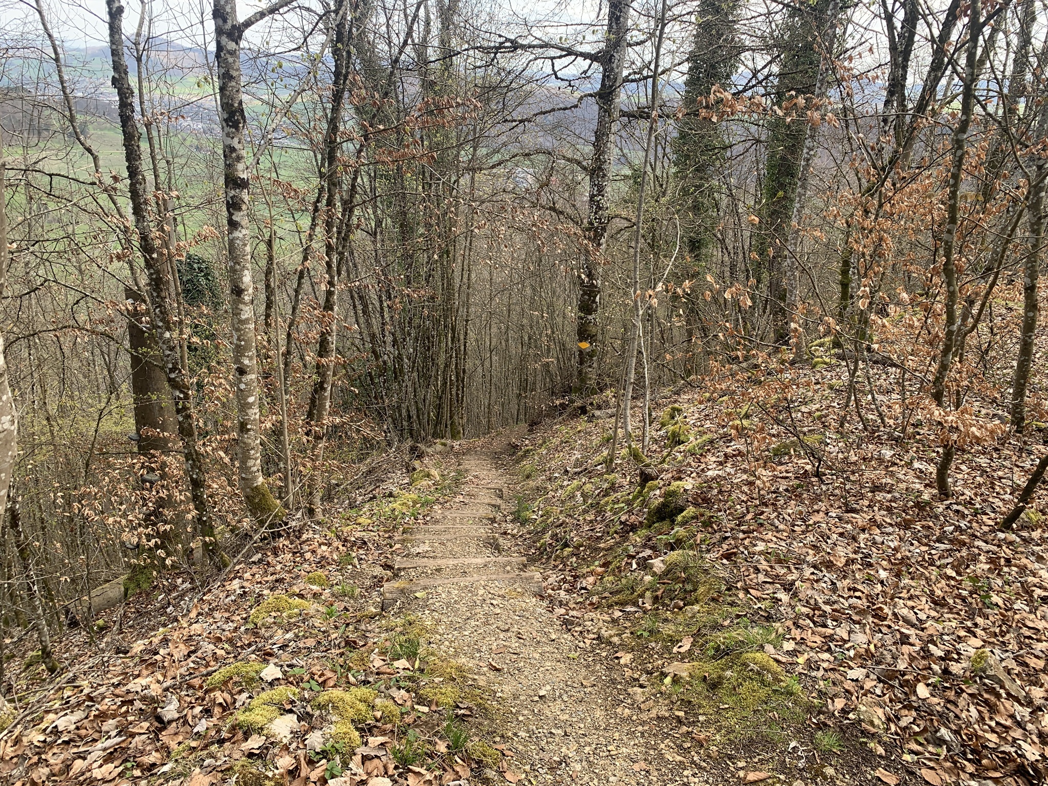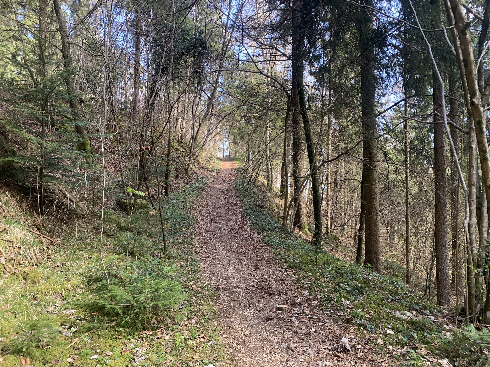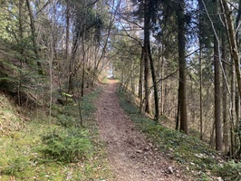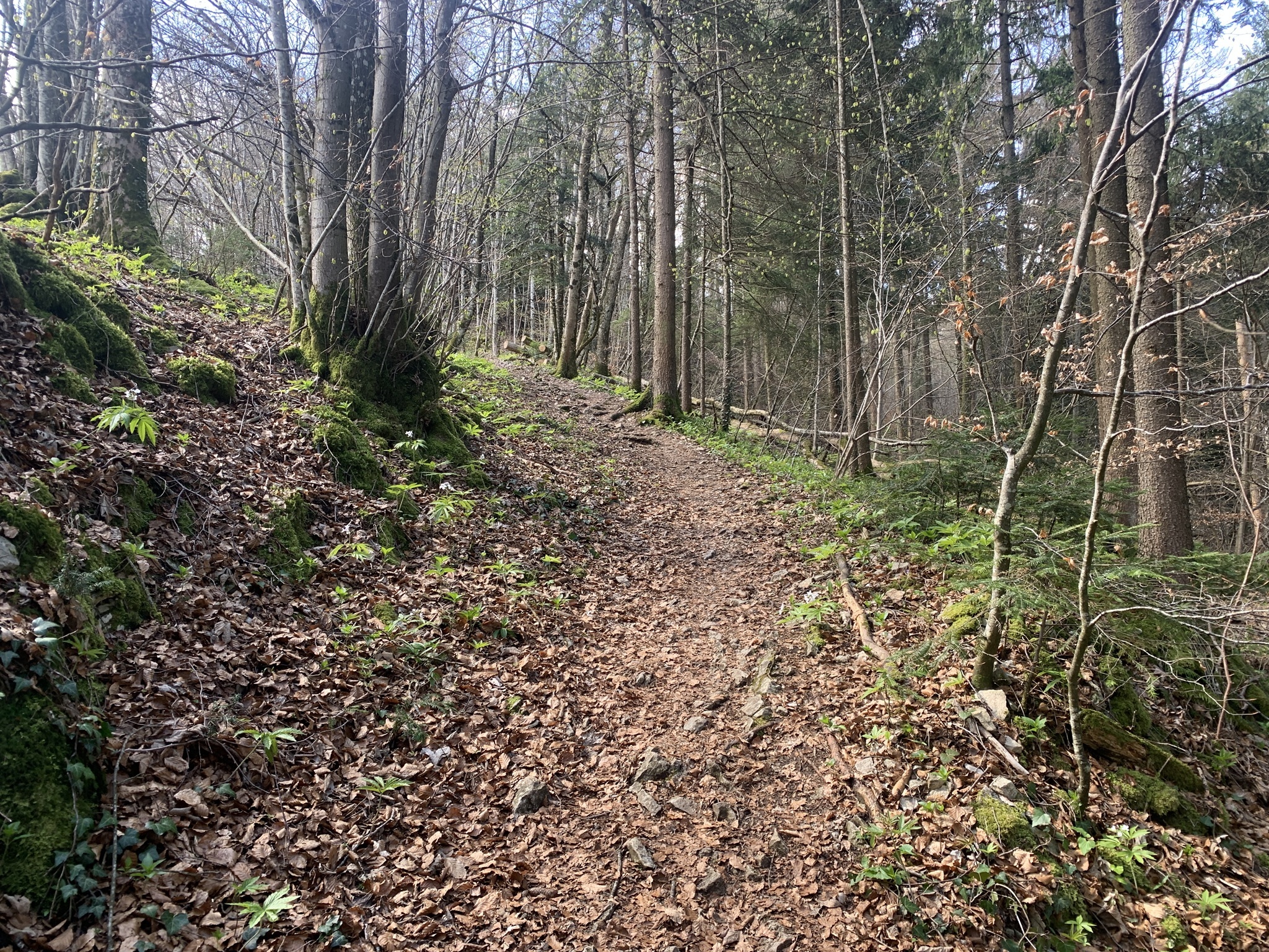 Jetzt folgt der schönste Abschnitt der Wanderung, auf einem sehr schönen Waldwanderweg geht es über den Tiersteinweg. Da die Bäume noch keine Blätter haben, gab es immer wieder schöne Blicke in das Tal.