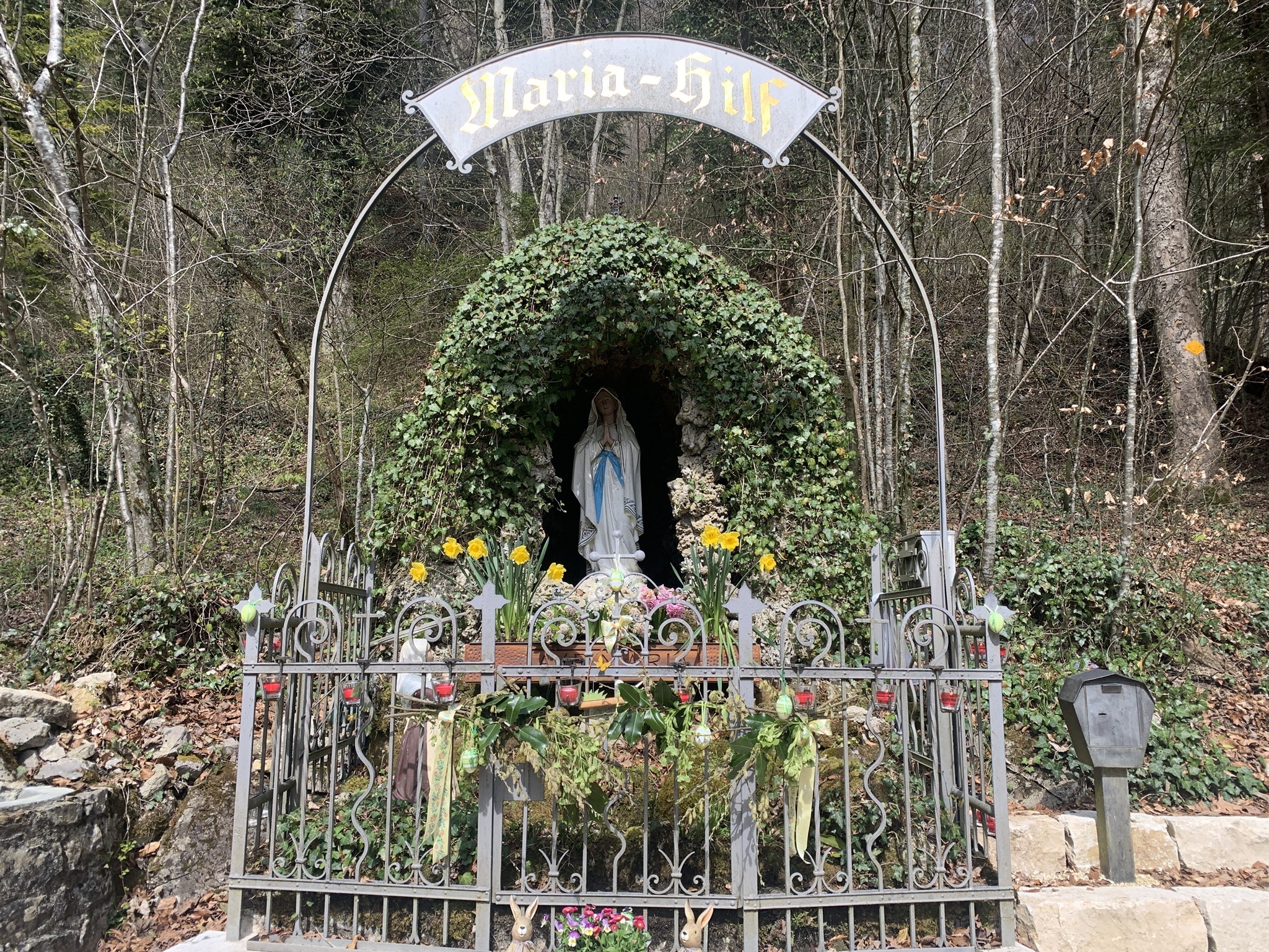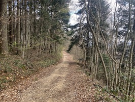 Ab Punkt 703 geht es noch einmal auf einer Mergelstrasse weiter, Nach dem Buschberg geht es dann noch einmal auf einem Wanderweg sehr steil hinunter zur Lourdes-Grotte. Jetzt folgt noch ein kurzer Abstieg, wiederum auf einer Mergelstrasse nach Wittnau.
