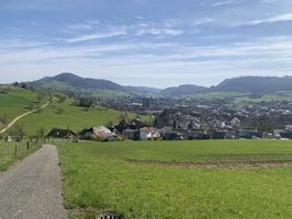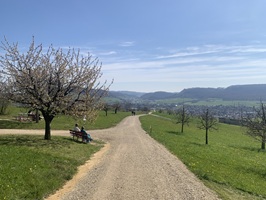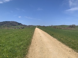 Zuerst geht es auf Hartbelag an der Bahnlinie entlang, danach steigt es hoch zum Sunnehof (alles auf Hartbelag).
