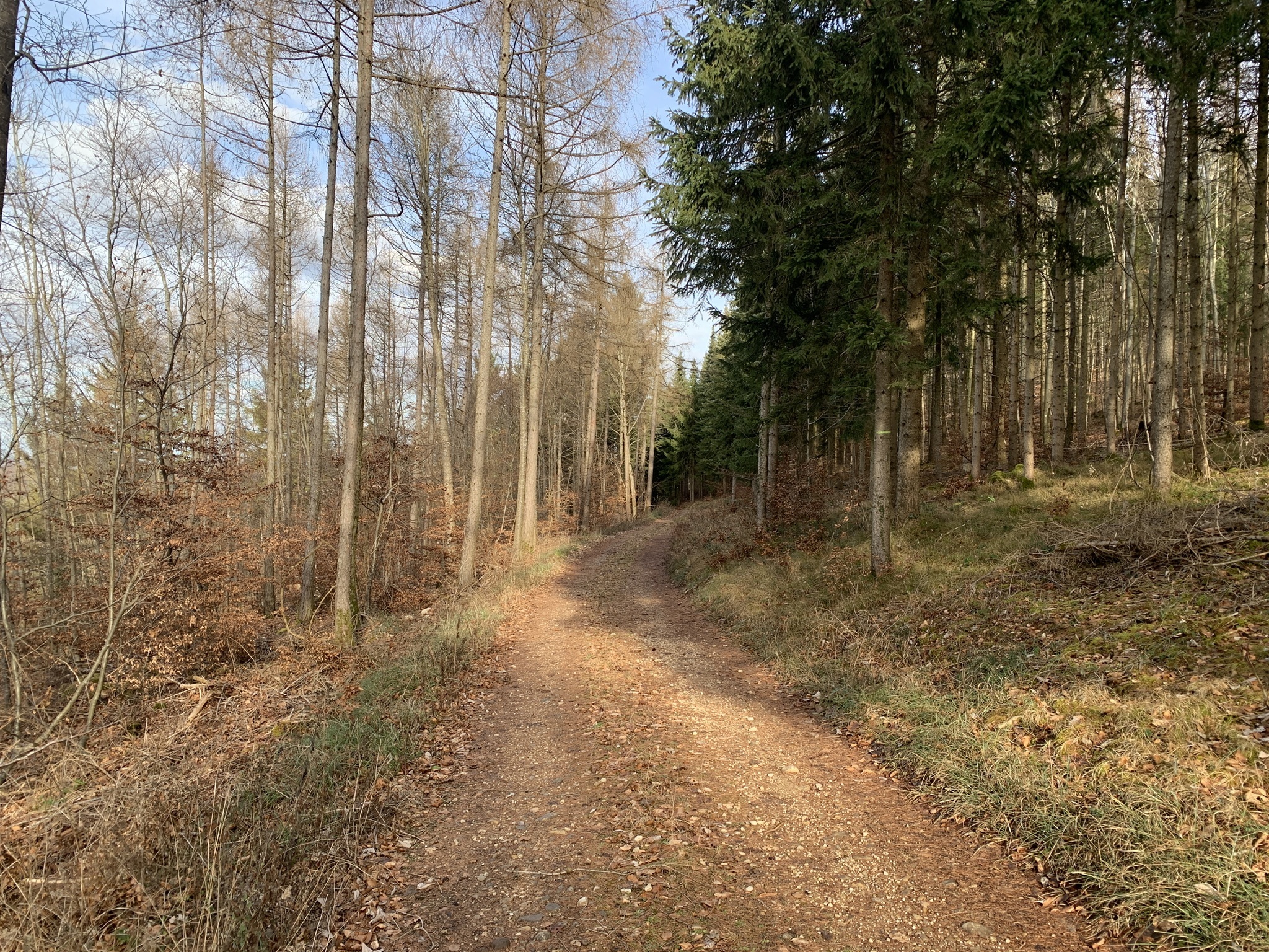 Weiter geht es durch den Wald hinunter Richtung Rankhof. Hier steig noch einmal sehr moderat hinauf zum Alteberg.