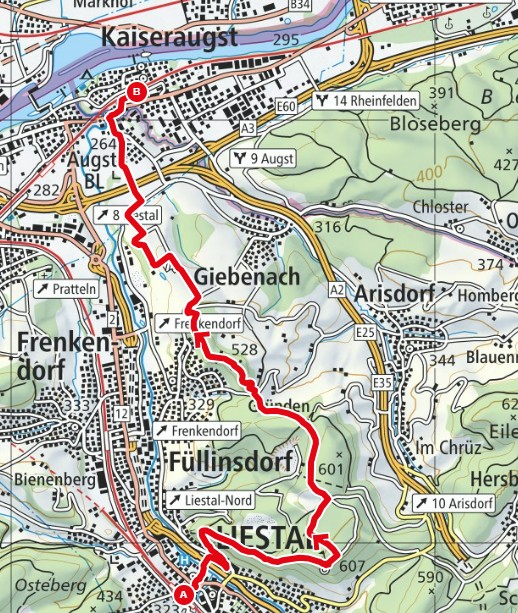 - Route: Liestal - Schleifenberg - Alteberg - Kaiseraugst